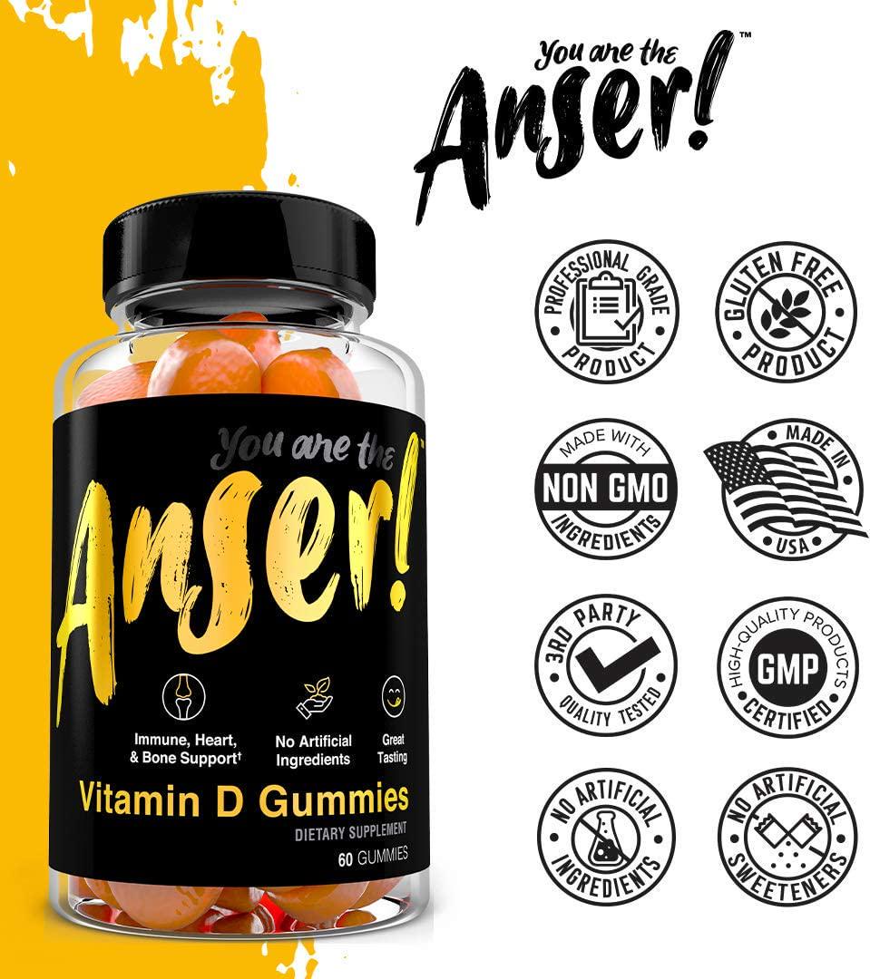 - ESSENTIAL VITAMIN FOR WHOLE BODY HEALTH: Natural sunlight helps spark Vitamin D production as soon as it hits our skin, but when you can’t catch those much needed sunrays Anser Vitamin D Gummies are here to put the power of the sun into a great tasting treat.