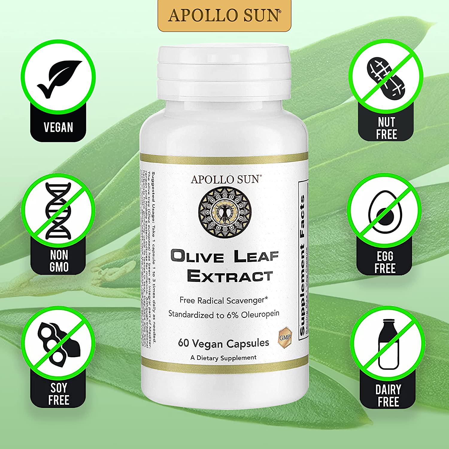- STRENGTH: APOLLO SUN Olive Leaf Extract is manufactured under strict quality control conditions and is standardized to a minimum of 6% oleuropein.