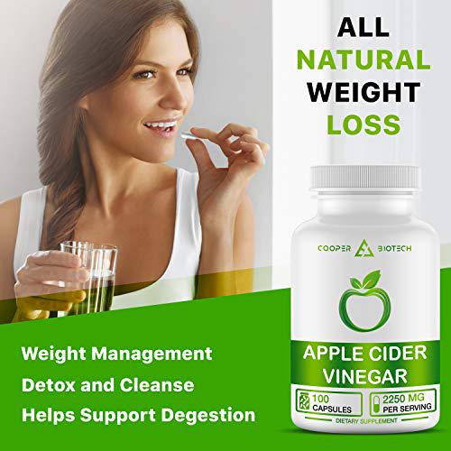 Apple Cider Vinegar Capsules - 100 Capsules 2250 MG - Organic Apple Cider Vinegar Pills for Cleanse and Detox - ACV Supplement for Immune System