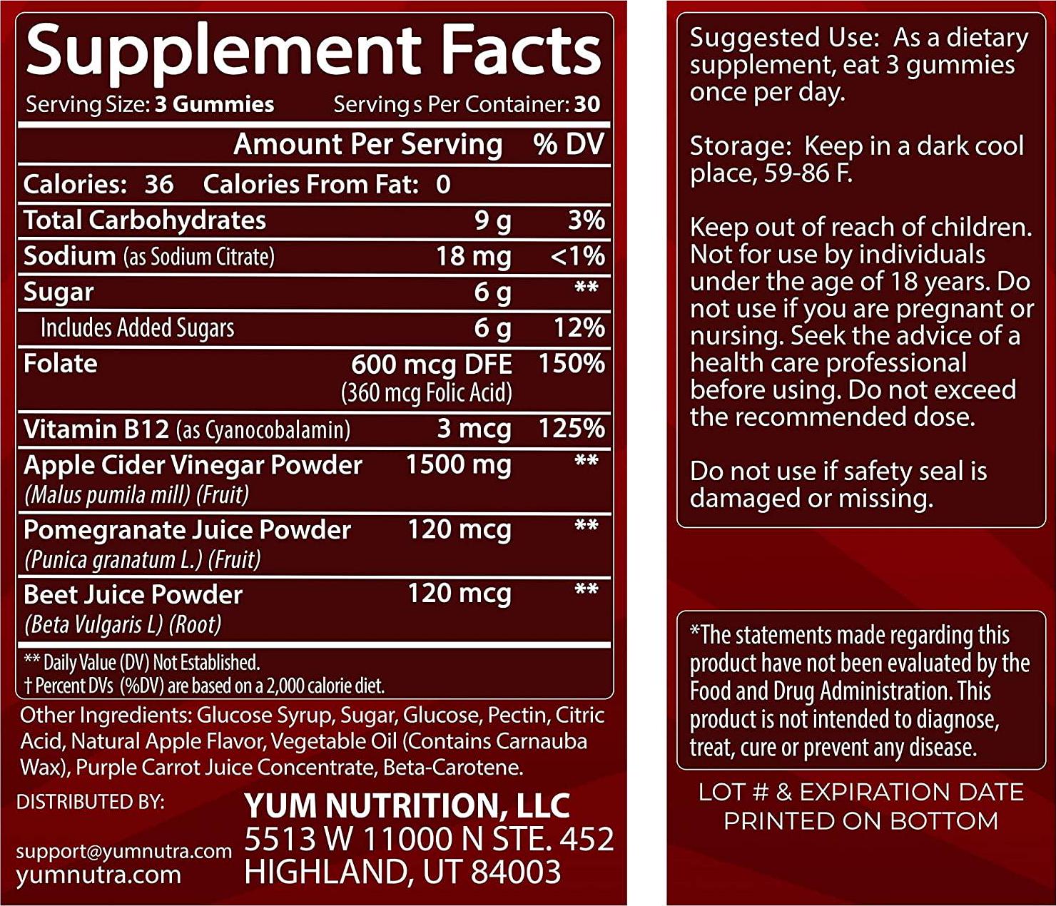 - Detox: Our ACV Gummies are formulated with natural ingredients including apples, beet root & pomegranate along with Vitamin B12 and Folate to help support a healthy lifestyle.