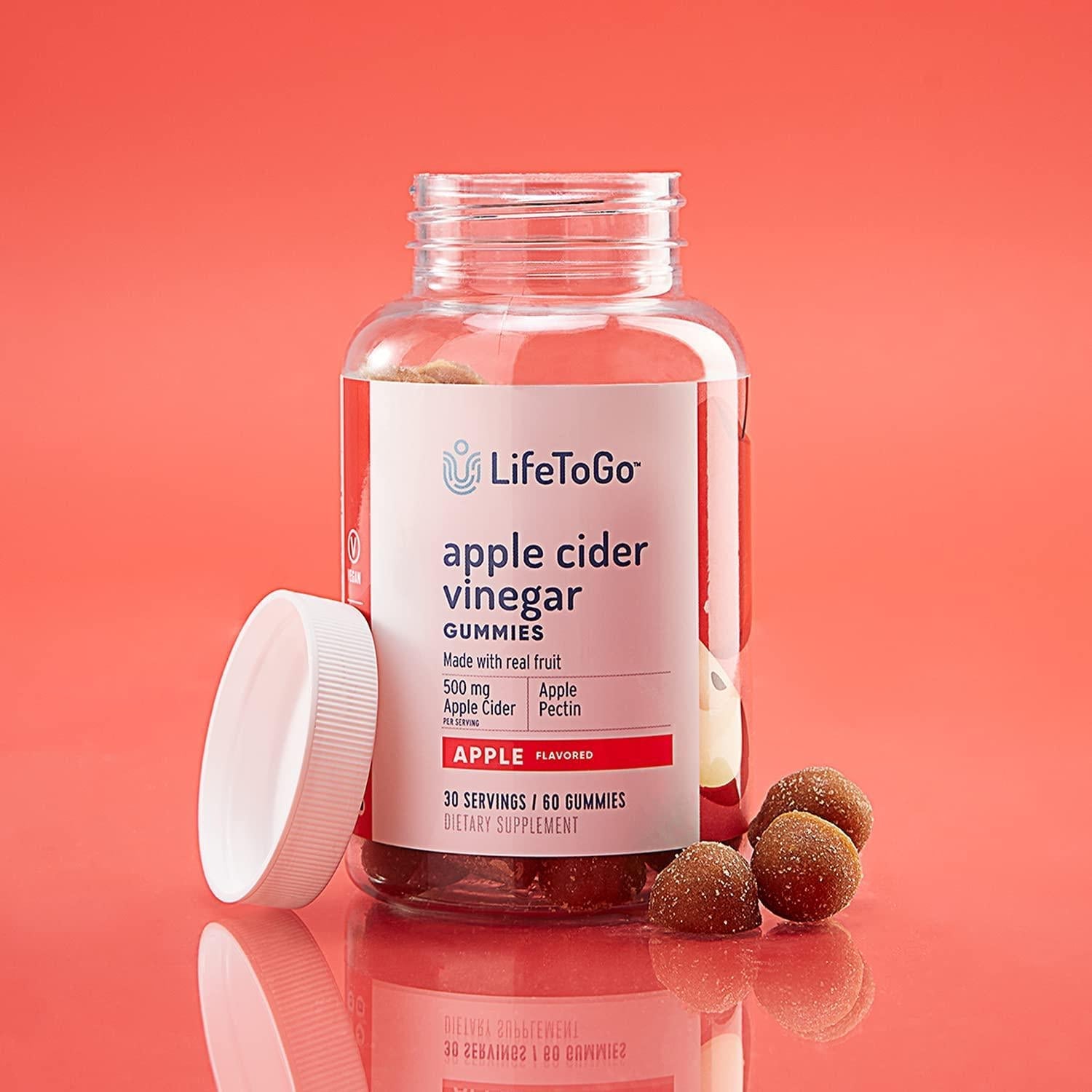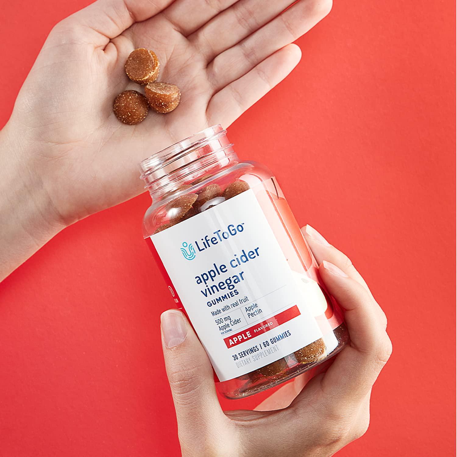 Apple Cider Vinegar Gummies from LifeToGo - No Pucker Apple Flavor Packed with 500 mg of Apple Cider for Immunity and Detox - 30 Day Supply of 60 Total Oral Gummies.