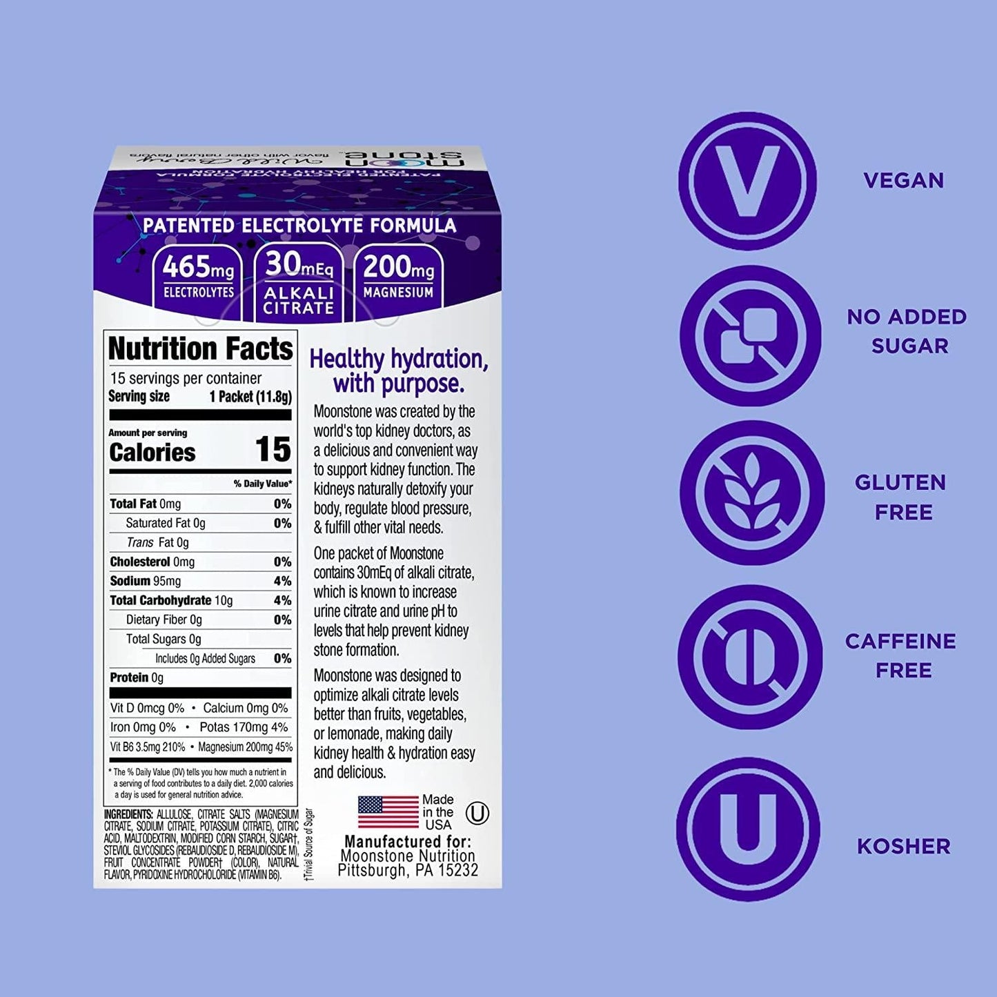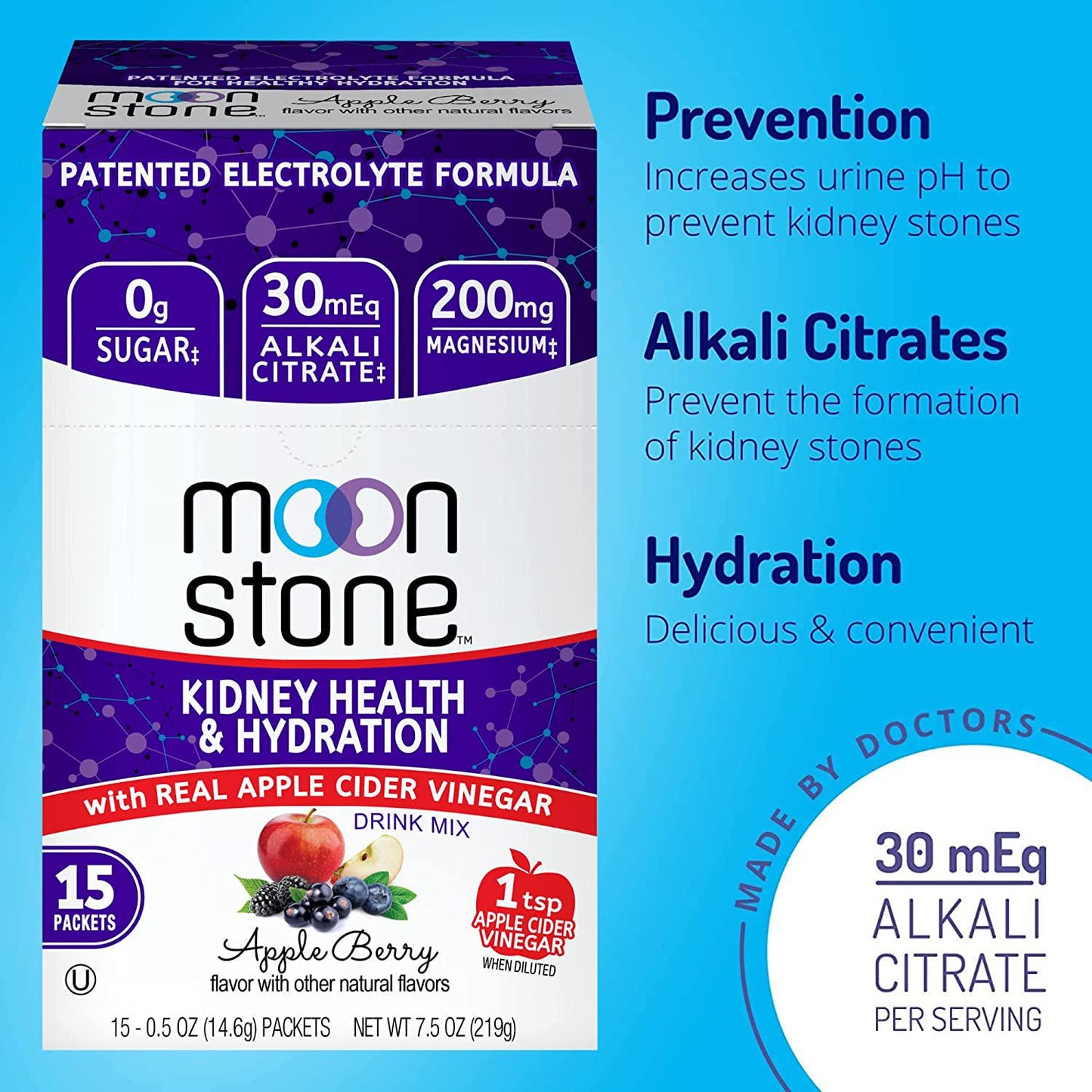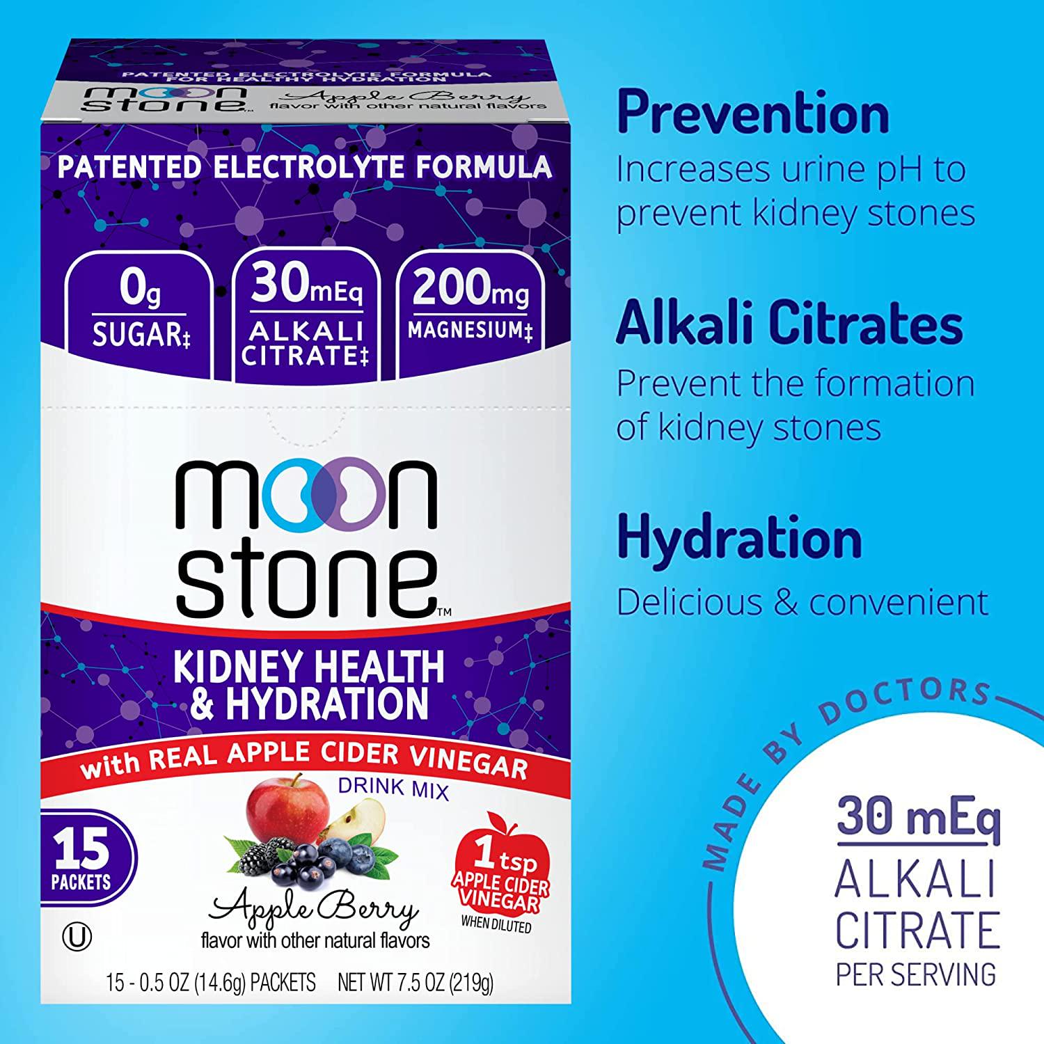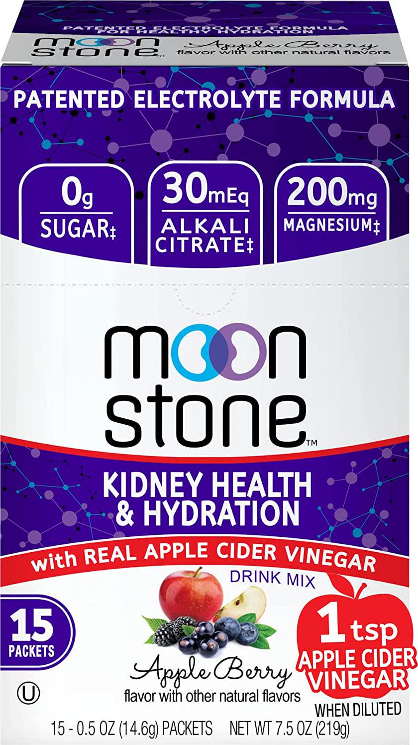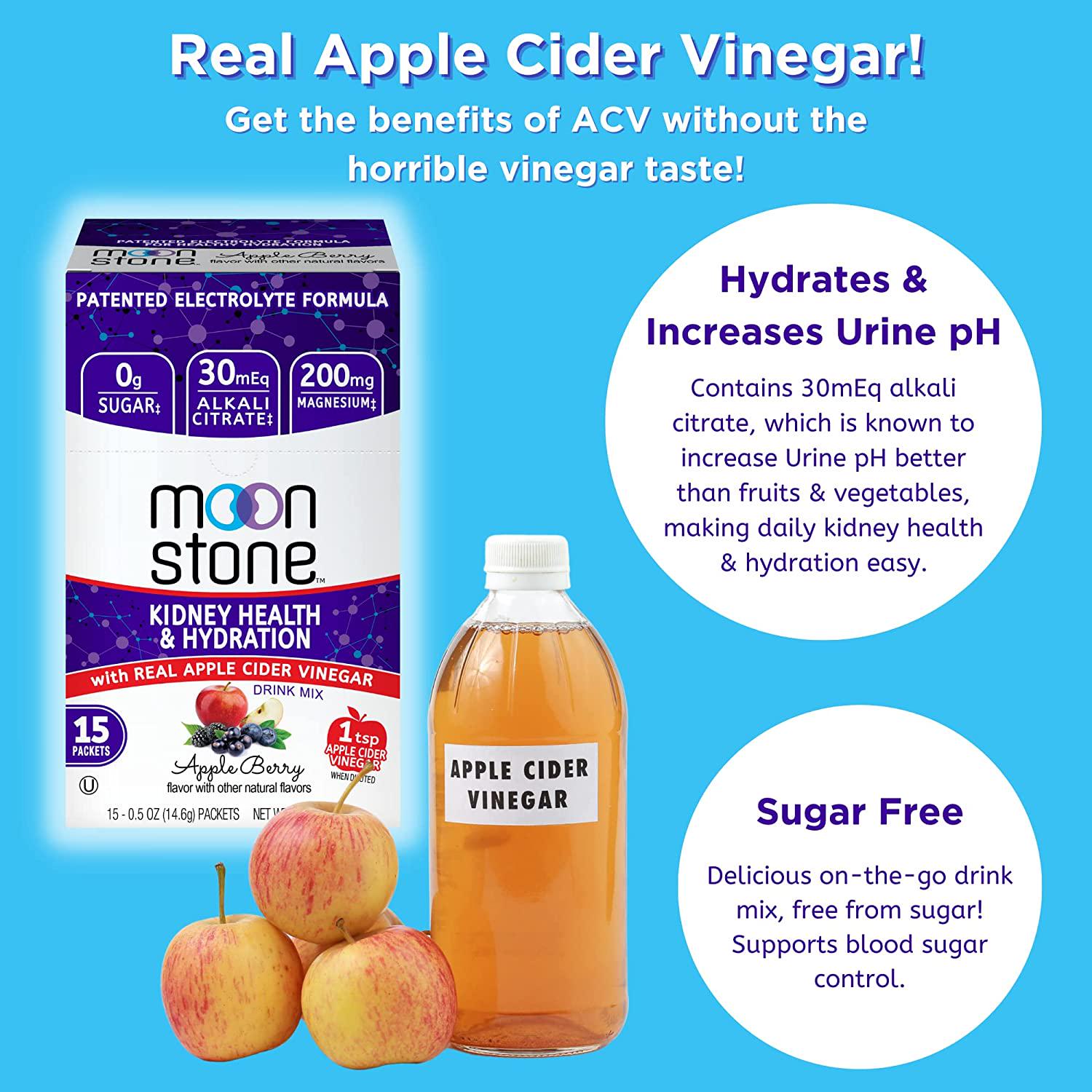 Apple Cider Vinegar Kidney Health Drink Mix by Moonstone Nutrition - ACV Supplement for Detox, Cleanse & Inflammation, with Magnesium & Electrolytes for Kidney Stone Prevention (15 Pack)