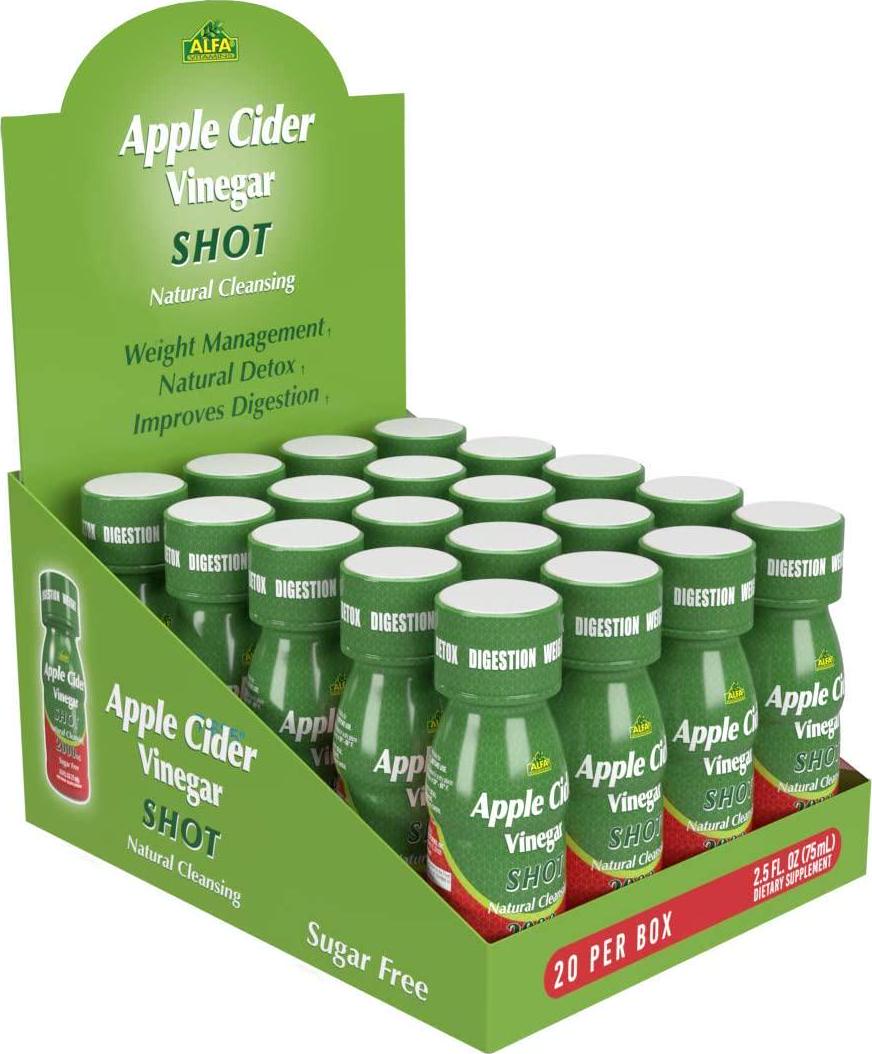 Apple Cider Vinegar Shot 2000 MG, Sugar-Free, Natural Cleansing, Digestion, Detox, Immune, Appetite Suppressant by Alfa Vitamins - Natural Flavor (2.5 FL OZ Bottle) 20 Pack