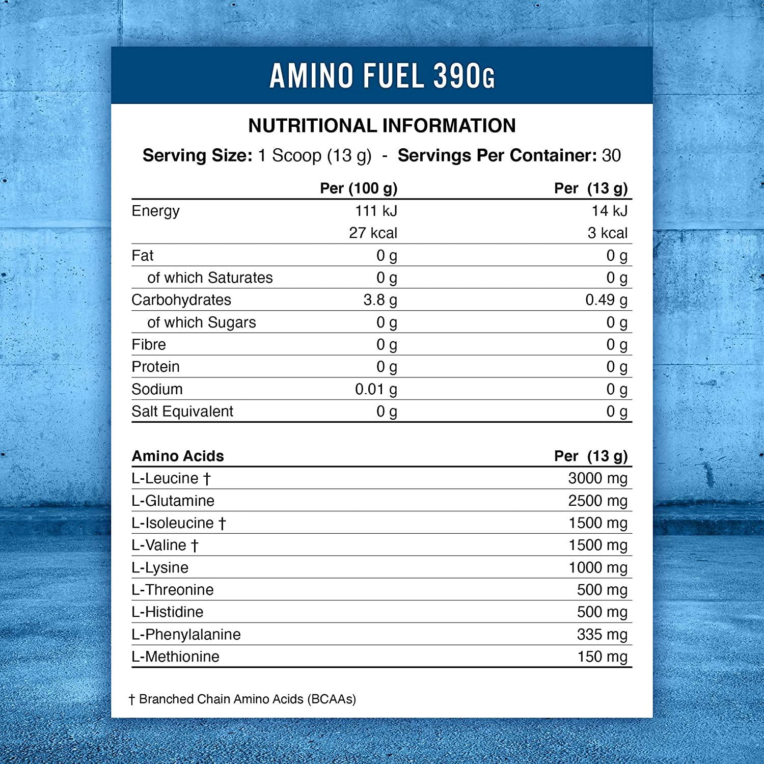 Amino fuel is the perfect blend delivering 11g of aminos per serving, 9g of which are essential amino acids (EAA) including 6g of branched chain amino acids (BCAAs) at a 2: 1: 1 ratio (3000mg l-leucine, 1500mg l-isoleucine, 1500mg l-valine) with an additional 2g of l-glutamine and 45mg of Astragin. Amino acids are complex chemicals that are the building blocks of protein. An essential amino acid cannot be synthesized or created by the body and therefore must be supplied from the diet. Amino fuel can be consumed 24 hours a day or when extra amino intake is required, such as any form of exercise or activity.