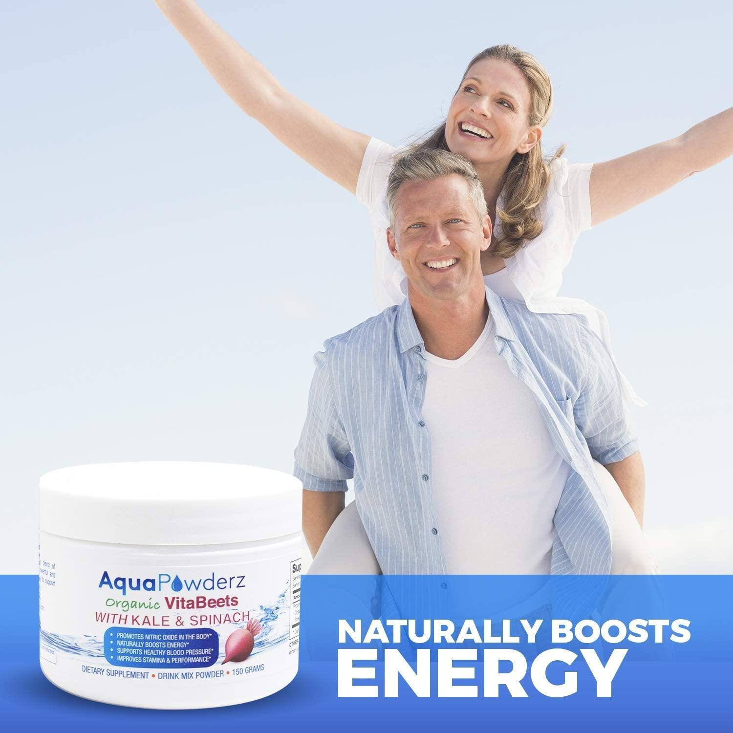 AquaPowderz Organic VitaBeets Powder| Beetroot Powder with Highly Nutritious Kale and Spinach Powder |Promotes Nitric Oxide for Heart Health| Energy |Stamina and Performance |Non GMO | USA |5.29 oz