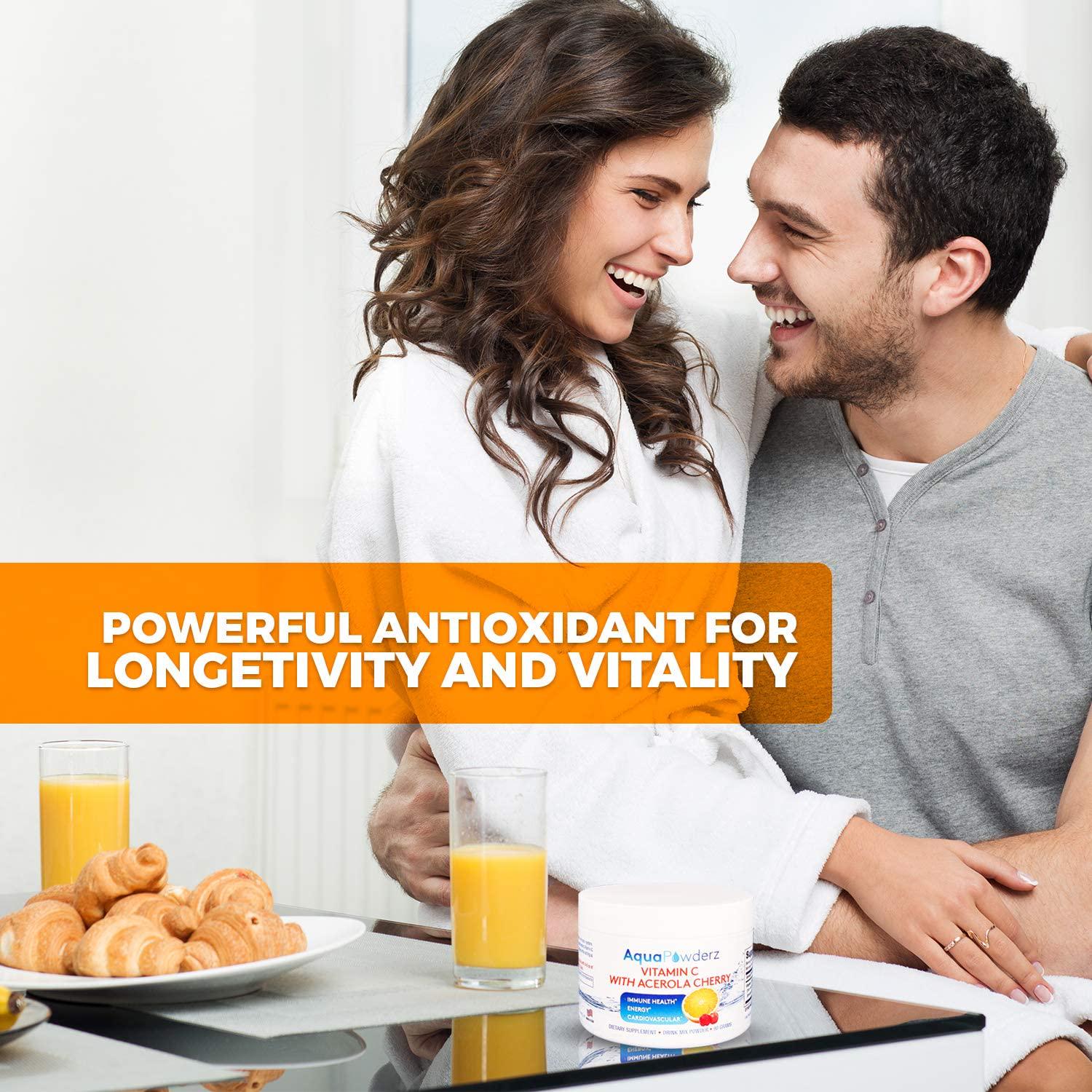 AquaPowderz Vitamin C Powder from Pure Ascorbic Acid w/Acerola Cherry, 2000 mg, Gluten Free - Immune Health, Energy, Cardiovascular Support