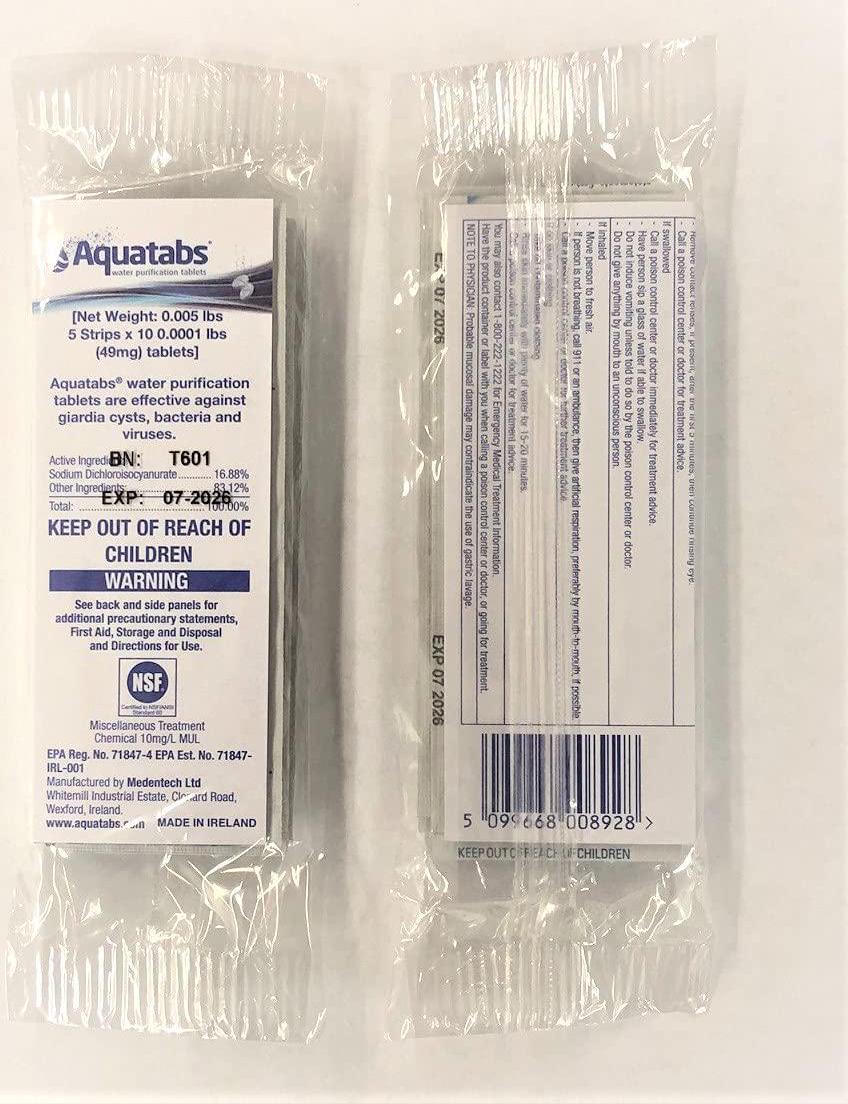 Aquatabs 50 Pack Water Purification Tablets EPA Approved Package, White, 8.5mg Aquatabs 50 Pack Water Purification Tablets EPA Approved Package, White, 8.5mg