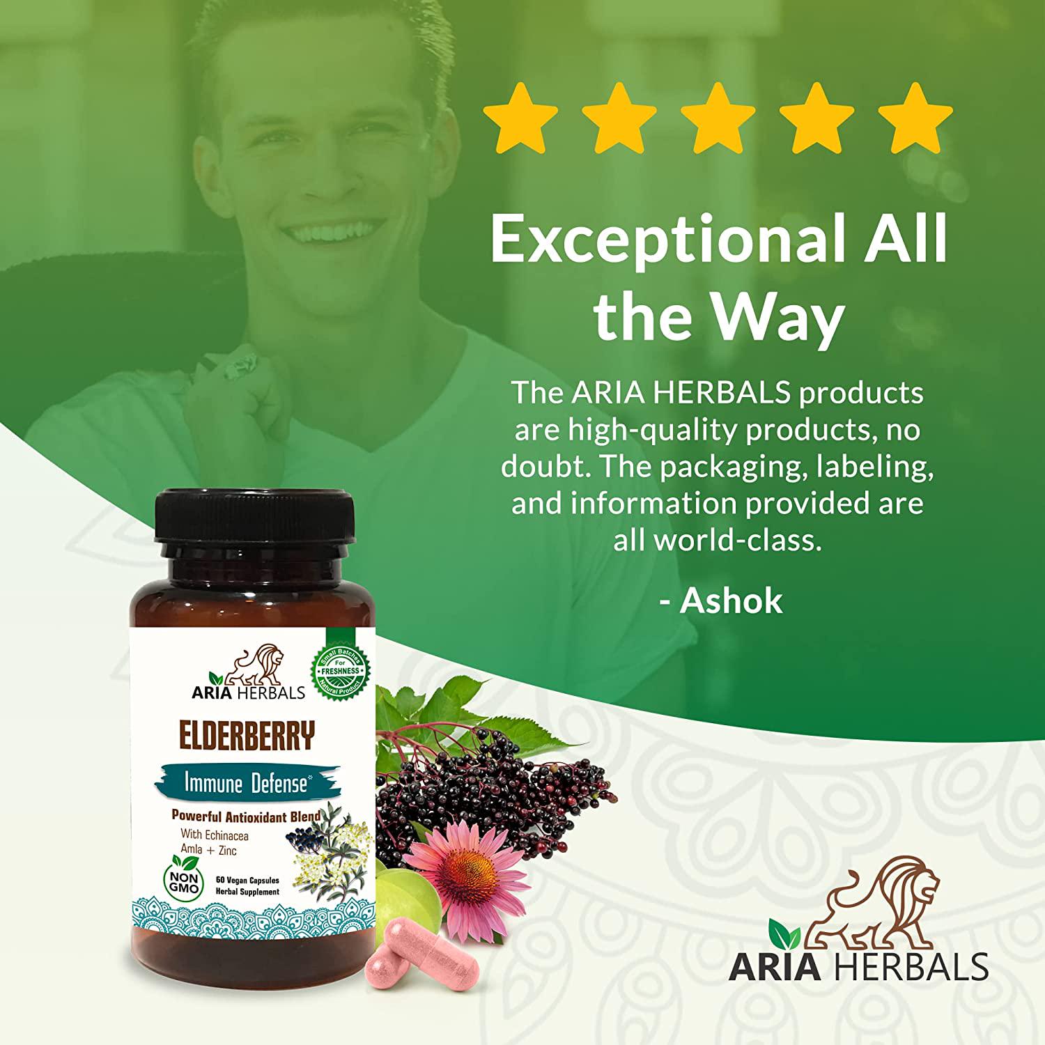 Aria Herbals Elderberry Supplement with Vitamins and Antioxidants, Elderberry Capsules Packed with Echinacea, Zinc and Amla, Fortified with Vitamin C for Immune Defense, 60 Vegan Capsules