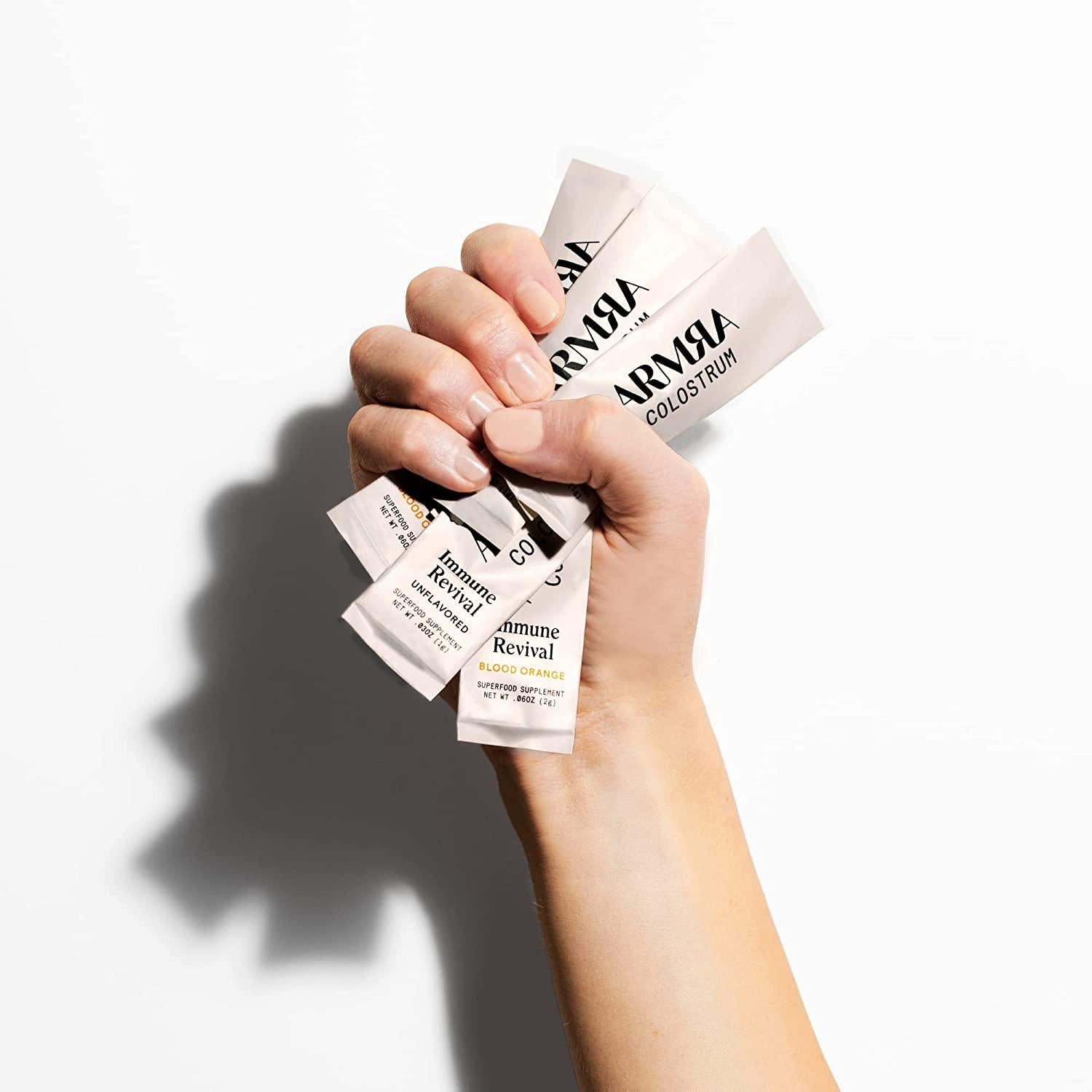 All Natural. Clinically Proven. Doctor Recommended. No Sugar or Additives. Nature's Original Superfood for Your Best Immune Health. The skin protects our bodies on the outside, but our inside surfaces along the mouth, nose, lungs, and gut are also protected by a barrier called the mucosa. These mucosal linings serve a crucial role in immune defense against threats bacteria, viruses, allergens, and toxins inhaled and ingested from the outside world. ARMRA is a natural, proactive immune supplement scientifically proven to build and strengthen these mucosal barriers. ARMRA is powered by natural bioactives from colostrum, mother natures 300 million-year-old immunity superfood. And it is the only bovine colostrum product on the market specifically formulated for human health. Directions for use: Suitable for all ages. Mix 1 packet a day with your favorite drink, smoothie or yogurt. Dose may be increased to 2 packets a day as needed, or during times of increased threats. For children under 10, start with 1/2 packet. *To preserve the potency of bioactive ingredients, do not combine with hot liquids.