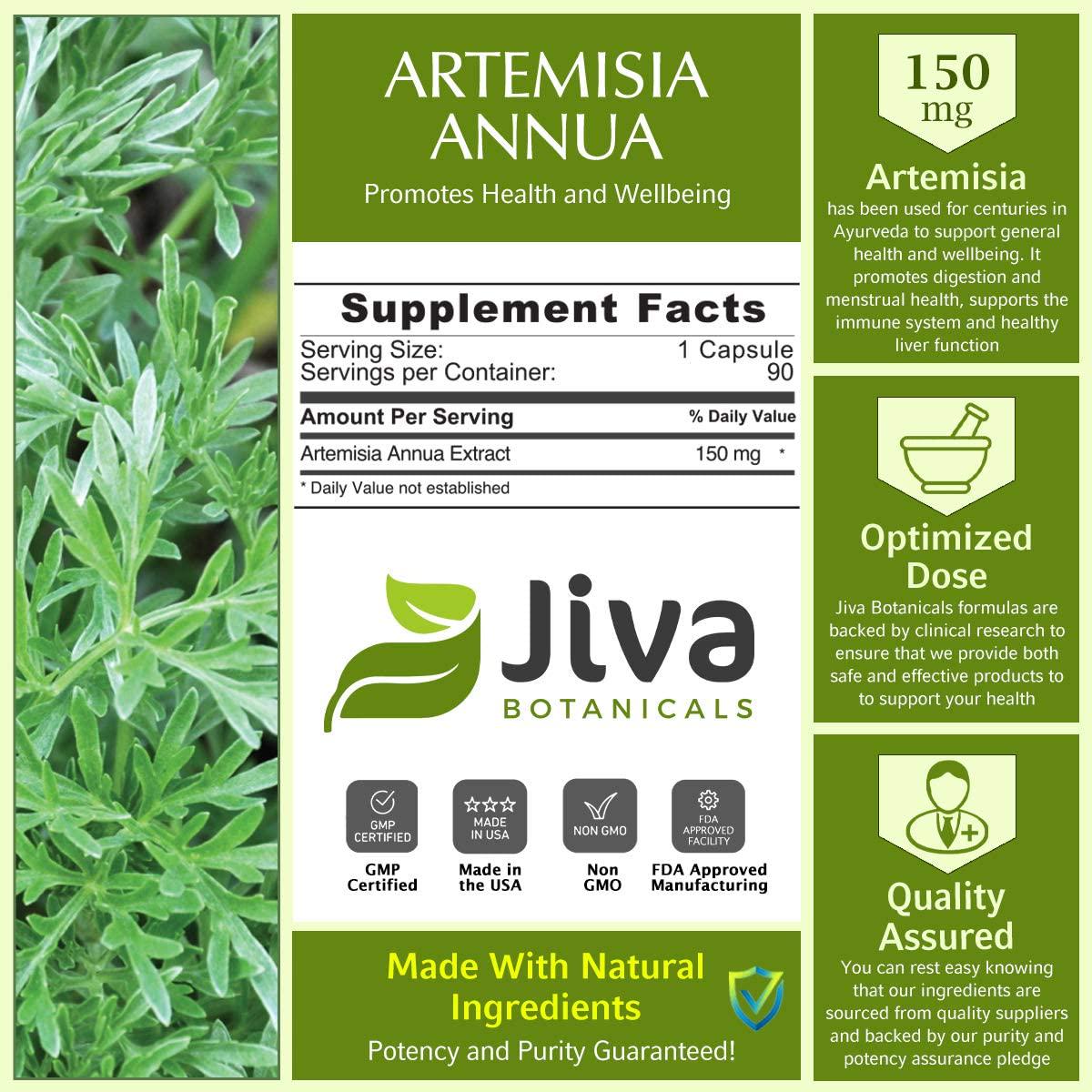 Artemisia Annua Extract (Wormwood) 150 mg High Potency Sweet Wormwood Capsules by Jiva Botanicals (90 Capsules, 3-Month Supply)