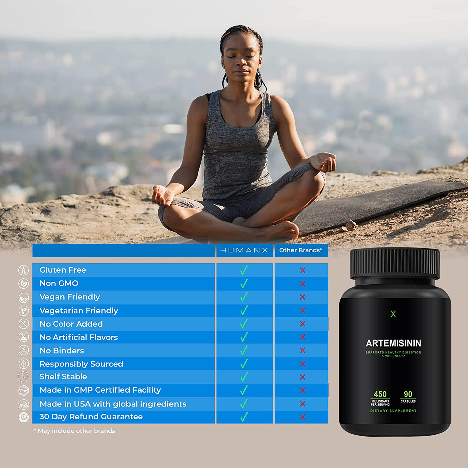 Artemisinin 450 mg - Artemisia Annua - Sweet Wormwood Extract - Artemisinin Capsules Support Healthy Aging, Digestion, and Immunity - Easy to Swallow Veggie Capsules - HumanX