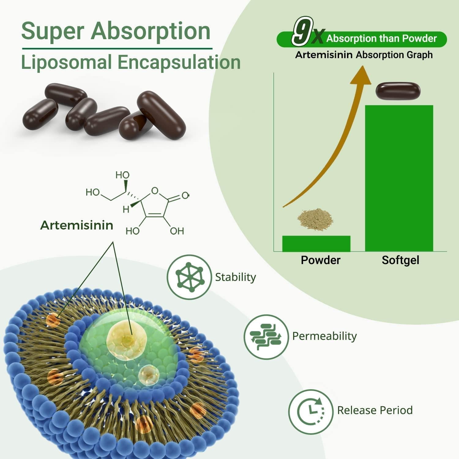 Artemisinin 500Mg Supplement, Artemisia Annua Sweet Wormwood Extract, Liposomal Artemisinin Plus 200mg Quercetin for Digestion, Immune Support, Anti Aging and Inflammation, 120 Servings