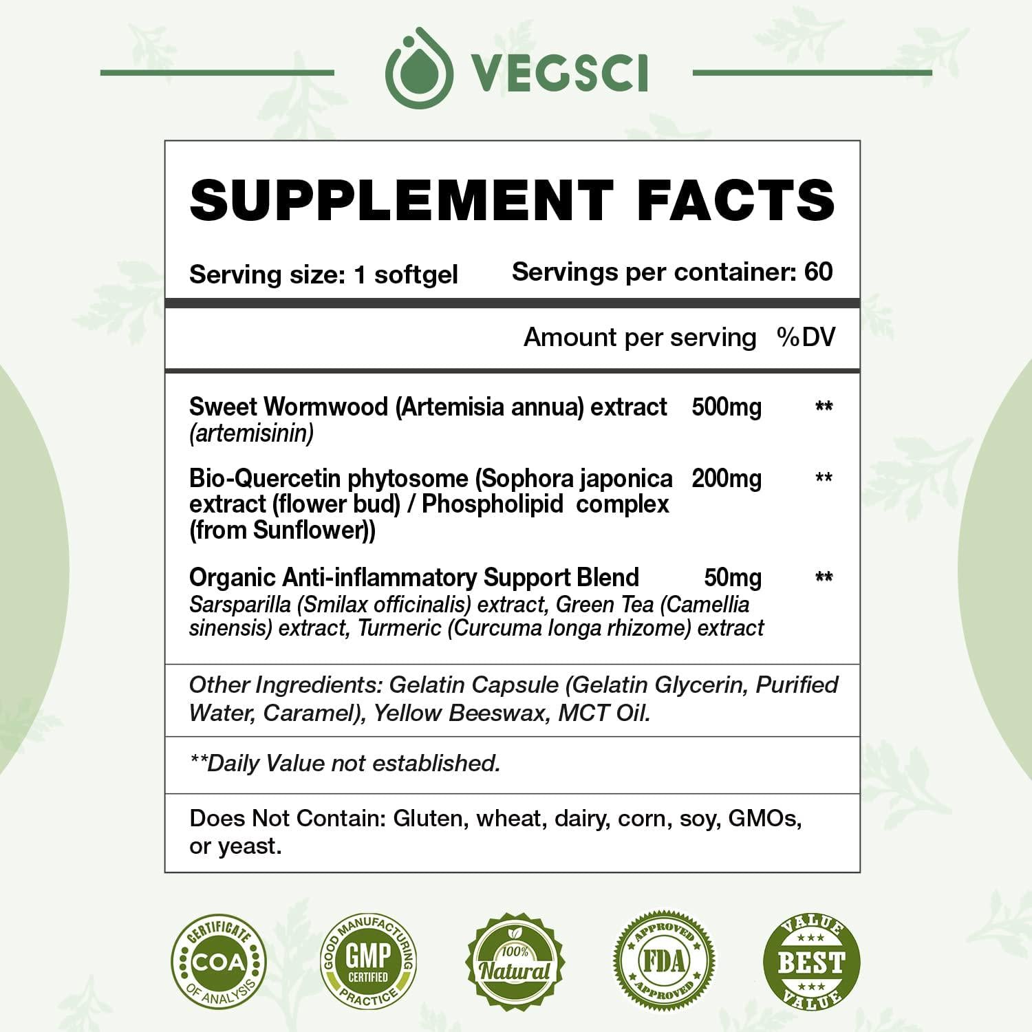 - The Best For You: Easy-to-swallow artemisinin softgels are perfect for the whole family. We specialize in nutrition and advocate scientific and refined supplementation. Take one softgel a day to make it easy for you to stay healthy. VegSCI offers you a 4-month supply. We strive to make the customer experience our top priority. If you are not satisfied, we will offer a return or refund.