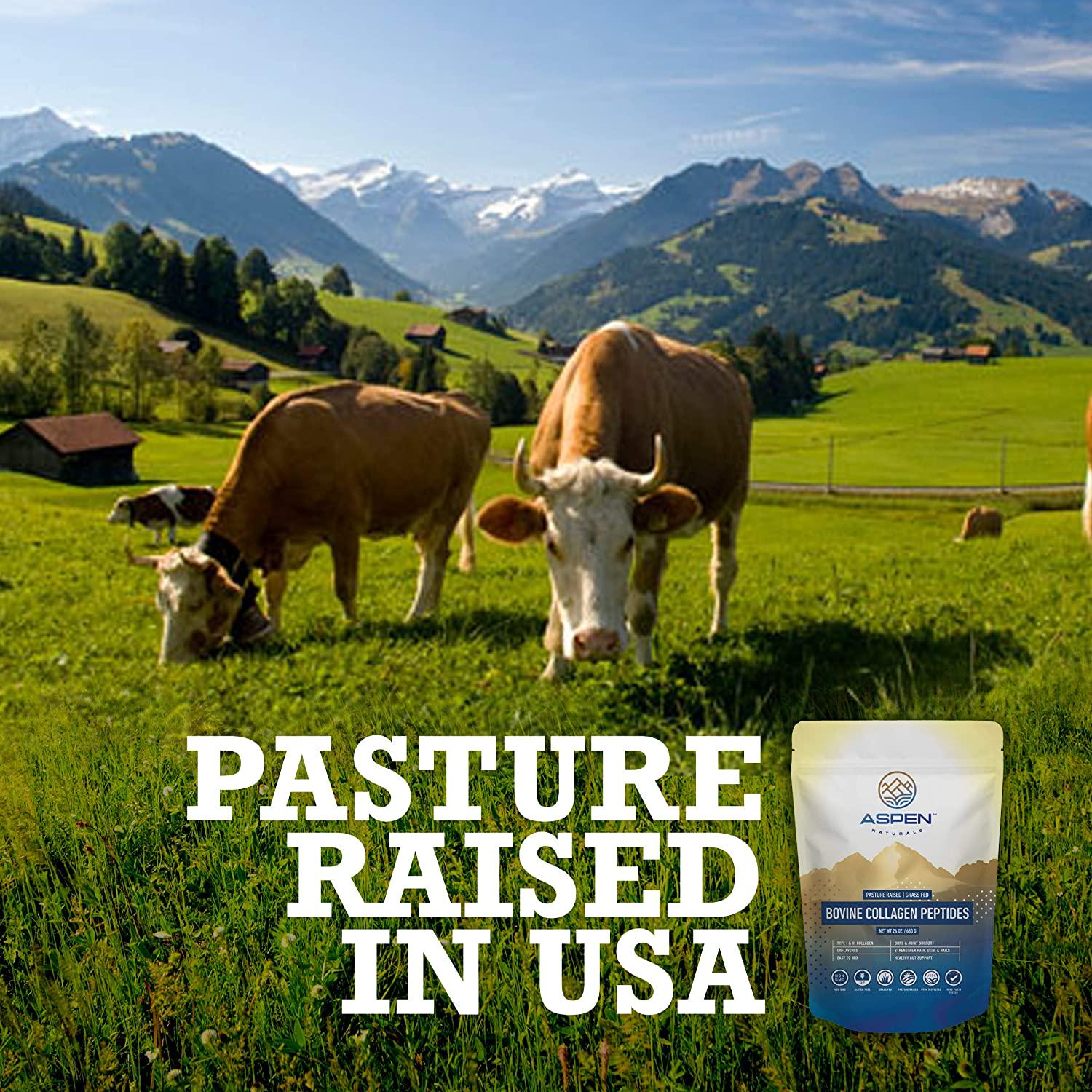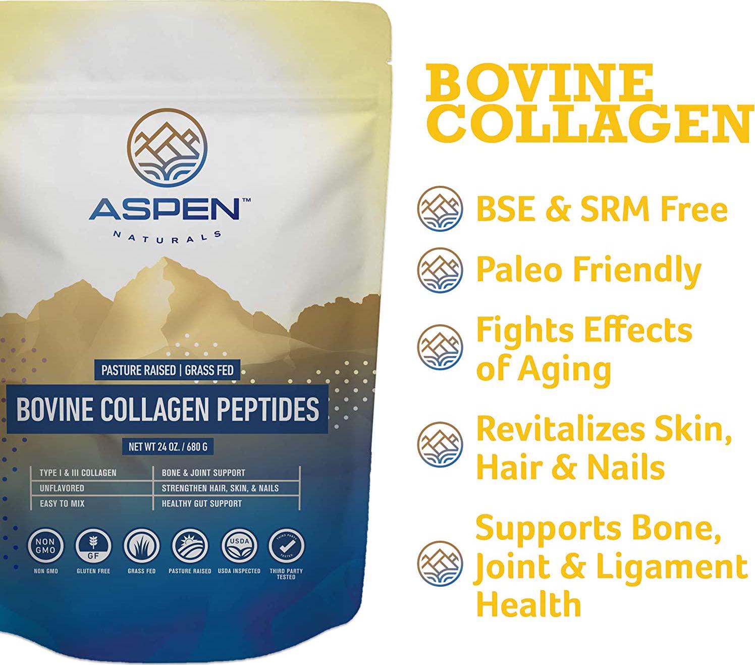 ASPEN NATURALS Grass Fed Bovine Collagen Peptides Powder - USA Sourced from USDA Inspected Cattle, Gluten Free, Paleo Friendly, Water Soluble, Flavorless, Easily Mixes into Liquids - 5LB