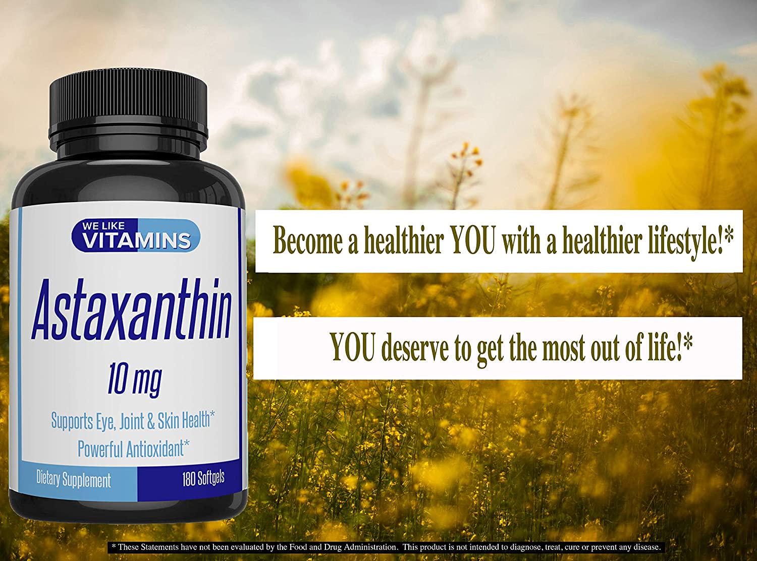 - BEST VALUE Astaxanthin -180 Capsules- 6 MONTH SUPPLY - Each bottle contains 180 Capsules of Astaxanthin for a full 6 Month Supply. Most others offer 120 pills or less at a higher price point. With We Like Vitamins Astaxanthin you buy fewer bottles and save money.*