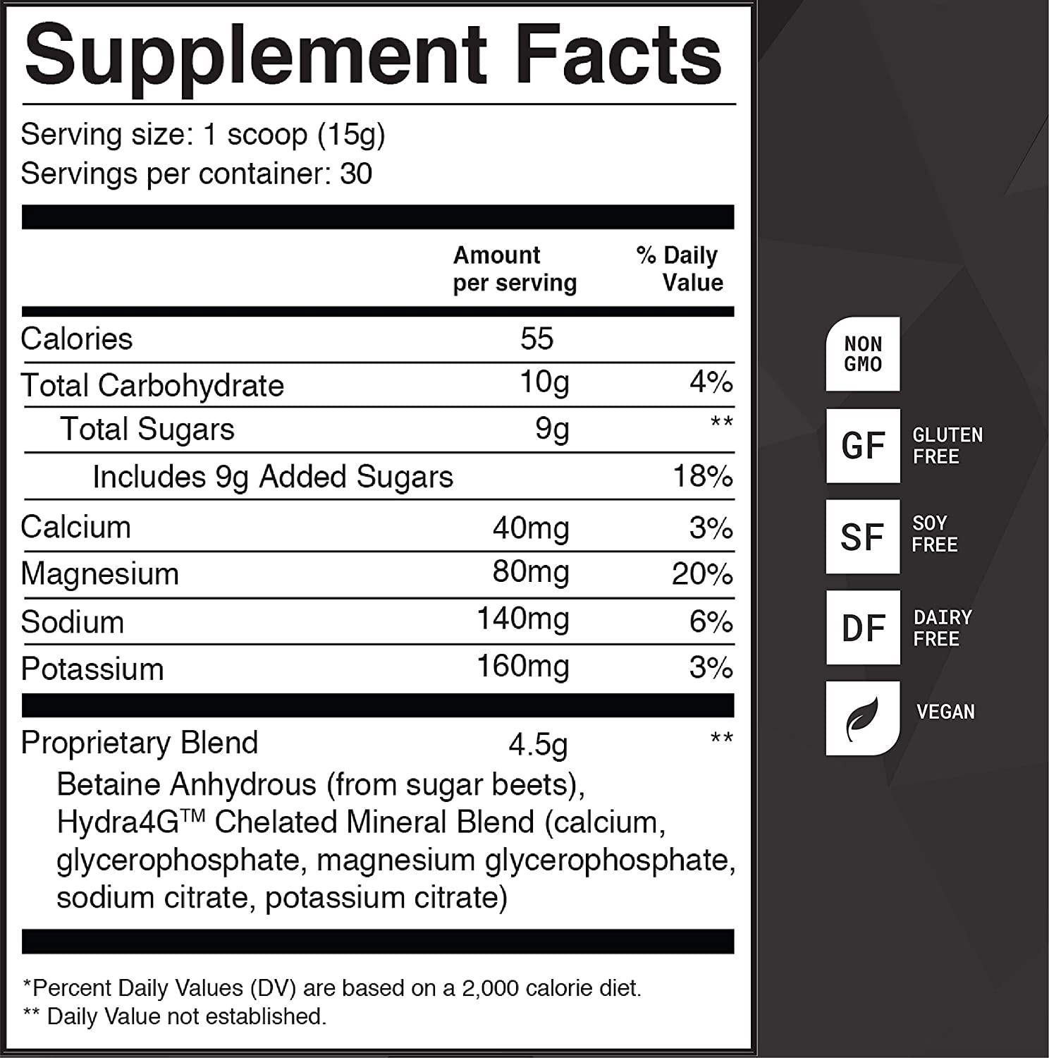 betaine, electrolyte hydration mix, gluten-free, mineral blend, natural sweeteners, plant based hydration, usa