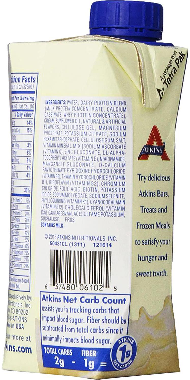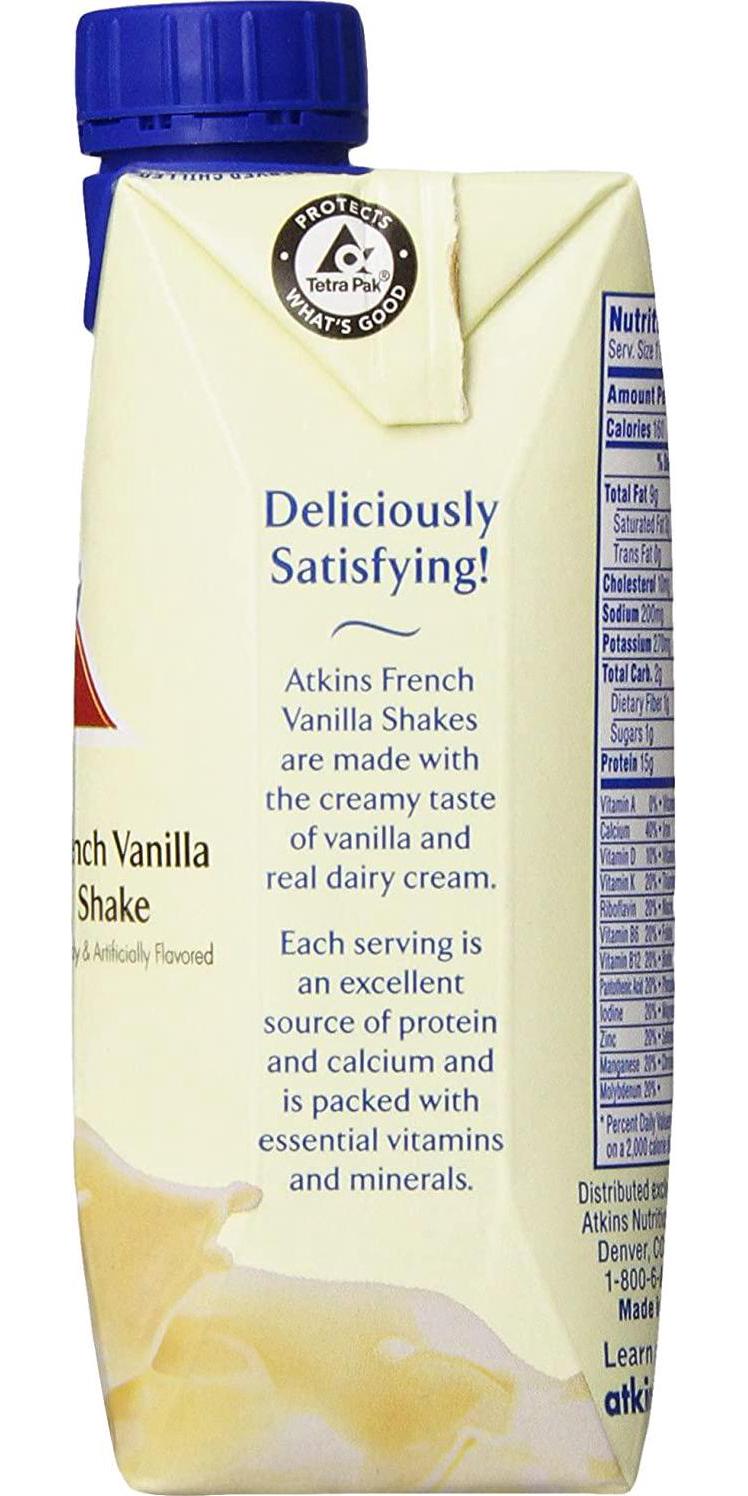 atkins advantage shake, calcium, creamy vanilla, dairy, low net carbs, protein, usa