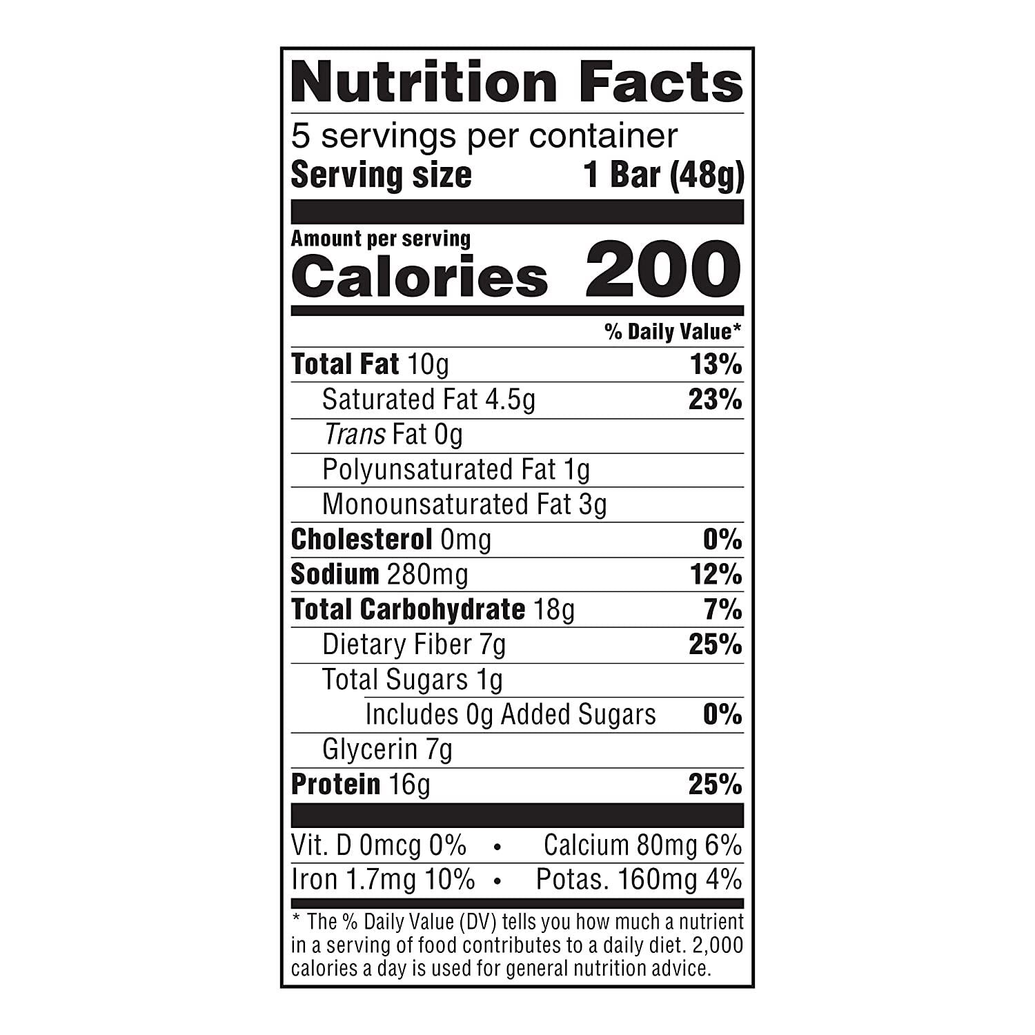 - MEAL ON-THE-GO. Enjoy a protein meal bar that fits right into your busy schedule. With 16 grams of protein and 7 grams of fiber per serving, this meal replacement bar is ready to help keep you satisfied throughout the day.