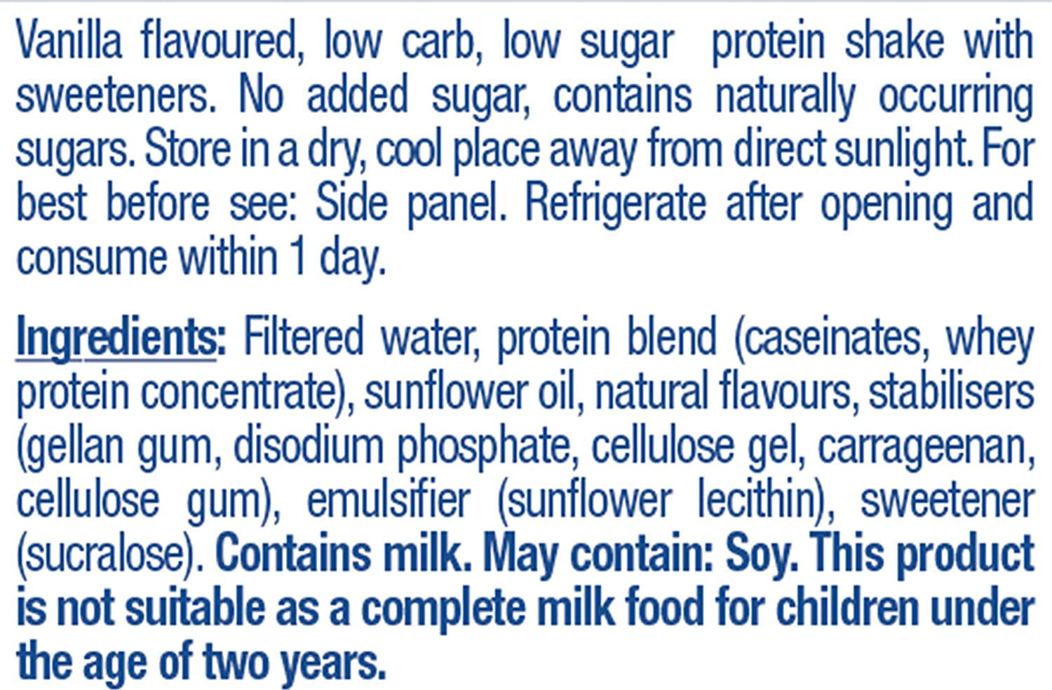 Low carb (0.1g), Low sugar (0.1g), High Protein (15g) The Atkins creamy vanilla RTD is low in sugar and carbs and packed full of protein! Made with gluten free ingredients and with less than 1 gram of sugar per serving, the Atkins Vanilla RTD is perfect for a quick snack or after a workout. You can even bake with our RTD's to give your favourite baked goods extra protein. SAY GOODBYE TO COUNTING CALORIES WITH A LOW-CARB LIFESTYLE AND MAKE CRAVINGS A THING OF THE PAST. EAT RIGHT. NOT LESS.