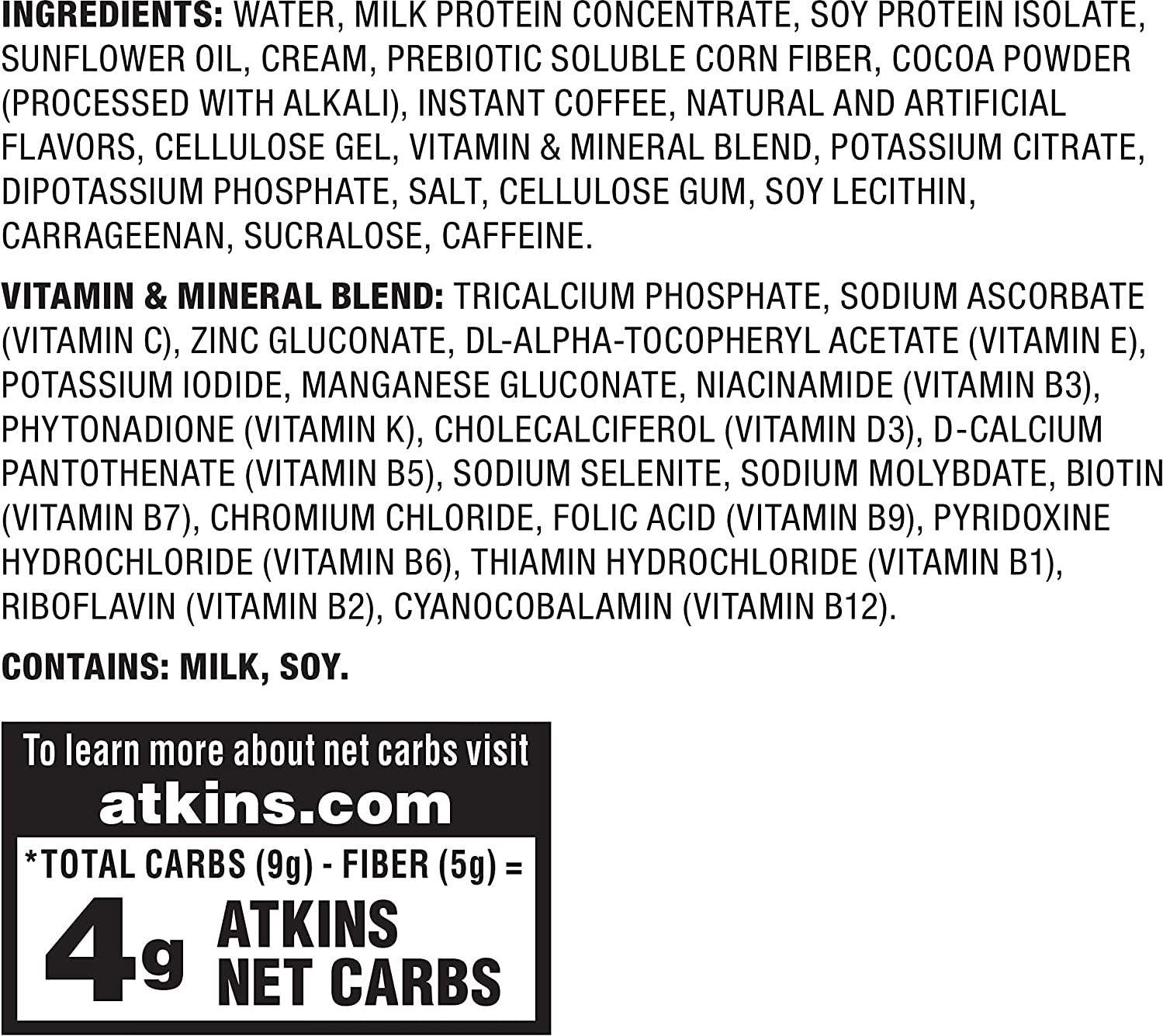 THE ATKINS MISSION. Atkins purpose is to improve global health and to help people understand that eating right is about both losing weight and becoming healthy. Thats done through the use of imagination, innovation, partnerships and commitment to science to make it easy to eat right. MOCHA LATTE SHAKE. Made with real coffee and rich chocolate flavor, this delicious mocha latte shake delivers all the flavor you crave with none of the guilt. Our ready-to-drink, gluten free shakes provide steady energy when you need it. For a quick, delicious breakfast or a mid-day recharge, reach for this rich and creamy shake to satisfy hunger. Our shakes are perfectly formulated to keep you satisfied and energized for the busy day ahead! WHATS INSIDE. Let this rich and creamy shake delight your taste buds while delivering essential vitamins and minerals. Includes 1 pack of 4 ready-to-drink 11 oz shakes with 15 grams of high-quality protein and 5 grams of fiber per serving to satisfy your hunger while helping you achieve your daily protein and fiber intake goals. And, with 4 grams of net carbs and 1 gram of sugar per serving, this shake is perfect for a keto-friendly*, low carb lifestyle. *When used with Atkins ketogenic programs EAT RIGHT. NOT LESS. Cardiologist Dr. Robert C. Atkins saw that eating right, not less, improved his patients health - not just in terms of weight loss but also reducing chronic issues. Over the last 45 years, mounting evidence is revealing that Dr. Atkins was right. PUBLIC HEALTH ADVOCACY. The Atkins Diet started as a fad, but quickly became a counter-conventional movement that reset peoples understanding of nutrition and weight loss, and its link to health. Atkins public health advocacy has played a significant role in updating dietary guidelines, moving them from less and towards right.