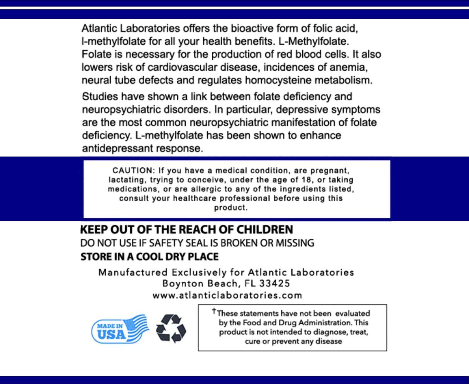 Atlantic Laboratories (5-MTHF) L-Methylfolate 15 mg + B 12 (15000 mcg + 1000 mcg) 60 Vegetarian Capsules - Professional Strength Active Folate, Filler and Gluten Free, Non-GMO