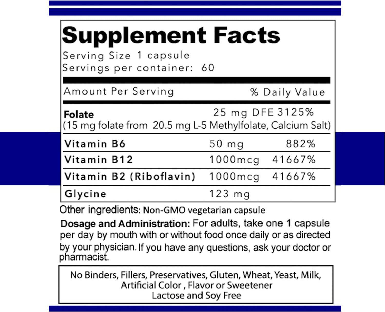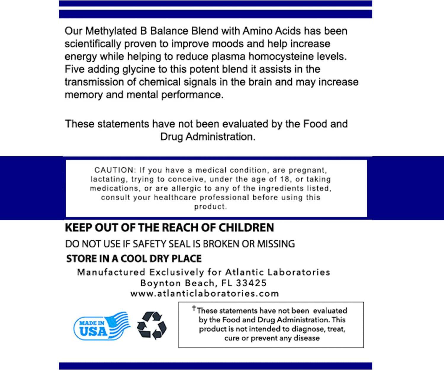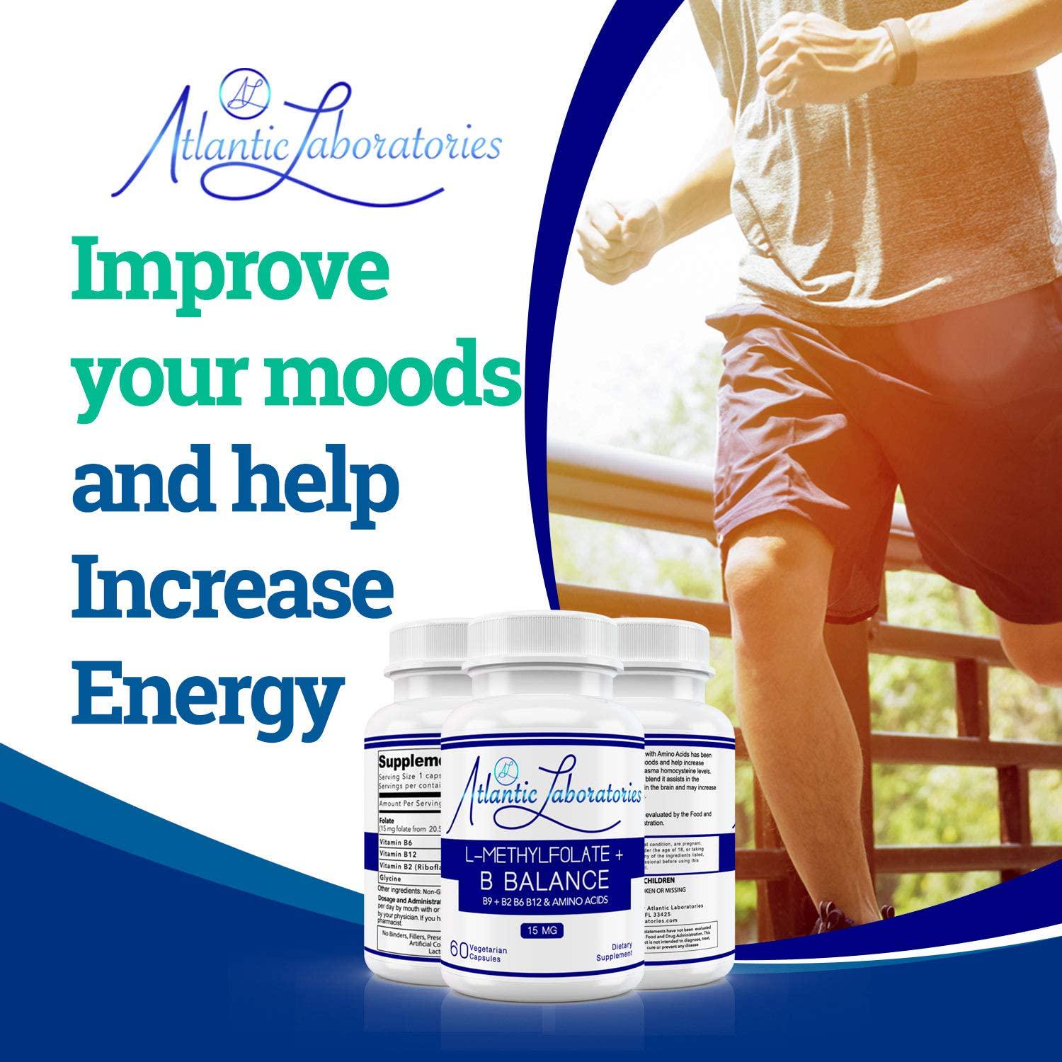 - Atlantic Laboratories L-Methylfolate 15 mg B9 + B2 B6 B12 Methylated Cofactors & Essential Amino Acids - Active Folate Glycine for Brain, Heart & Fetal Health, 60 Count (2 Month Supply)