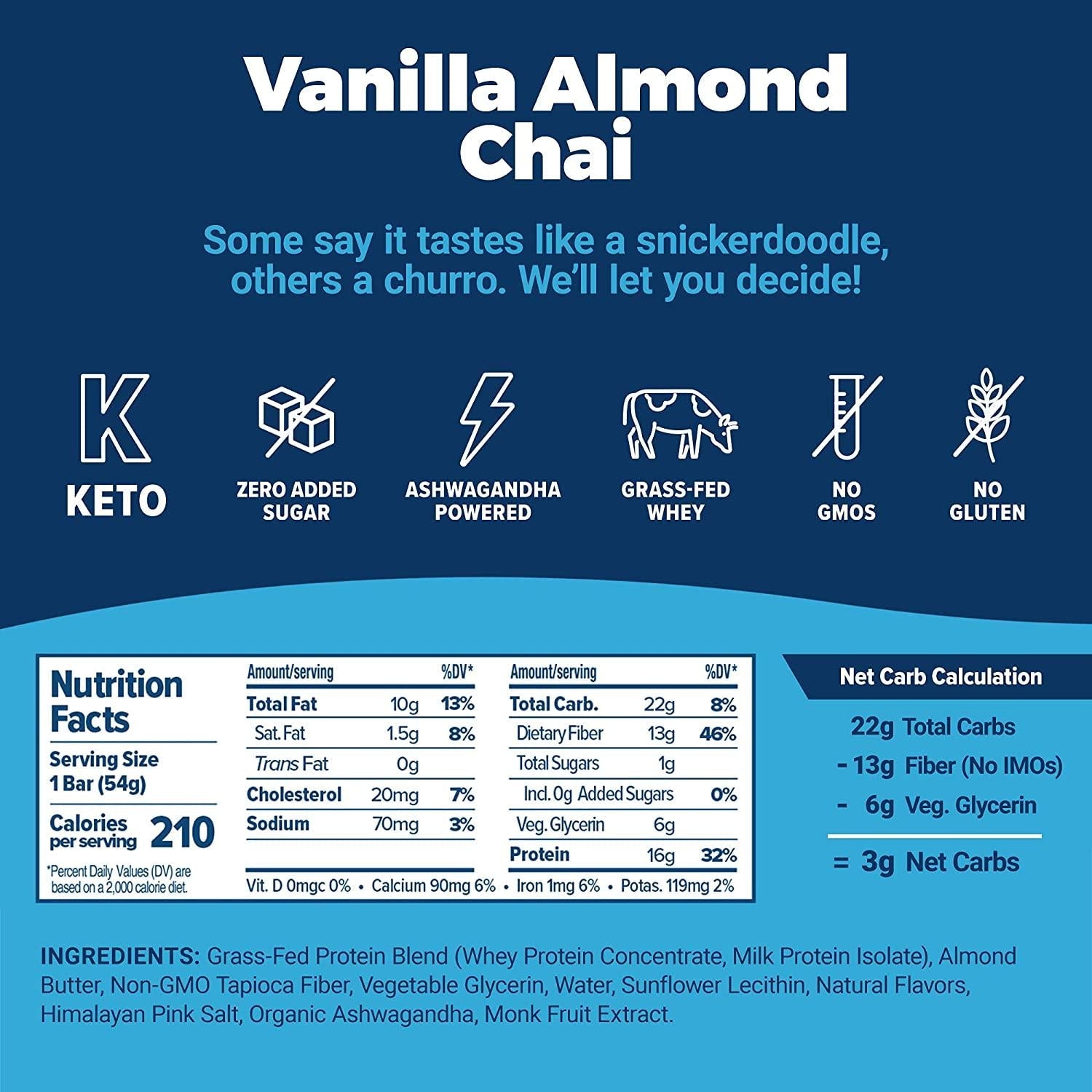 Atlas Protein Bar, Meal Replacement, Keto-Friendly Snack, Grass-Fed Whey, Organic Ashwagandha, Low Sugar, Low Carb, Gluten Free, 10 pack, Vanilla Almond Chai