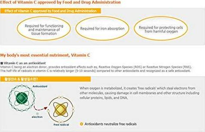 Recommanded Subjects - Those who want Vitamin C supplement - Those who want delicious and convenient supplement - Those with a diet high in meat - Those with difficulty in keeping a regular dietary life - Those who lack the intake of fruits and vegetables - Those in need of nutrient intake that helps iron absorption - Those who want energy in their repetitive daily life - Athletes with high activity level and office workers with long working hours - Kids in growth phase - Those who need formation and maintenance of connective tissues - Those who want to protect their bodies from free radicals that damages cells
