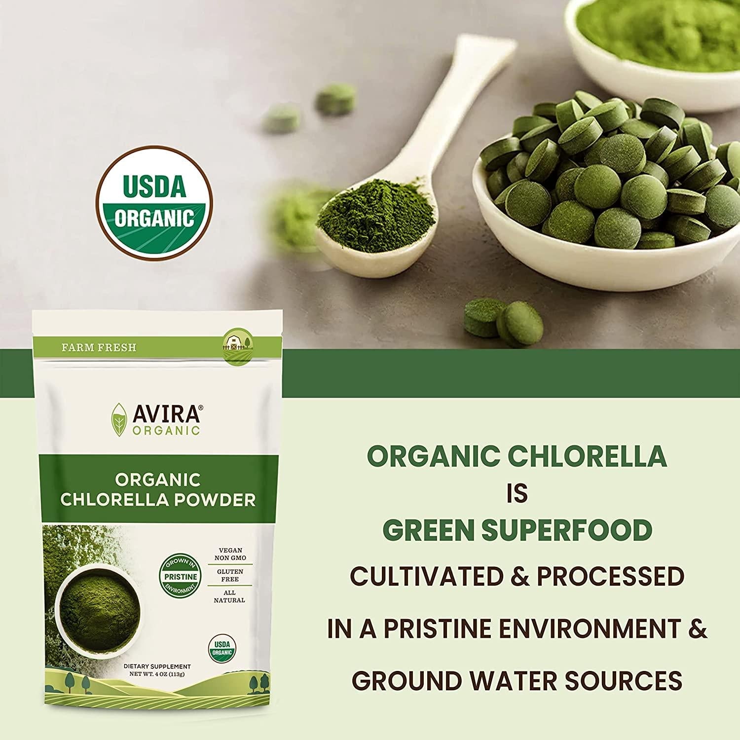 - AVIRA ORGANIC CHLORELLA: Chlorella Powder is Processed with utmost care No Harsh treatment & Temp higher than 43°C to retain the Vitamins & minerals of the chlorella.
