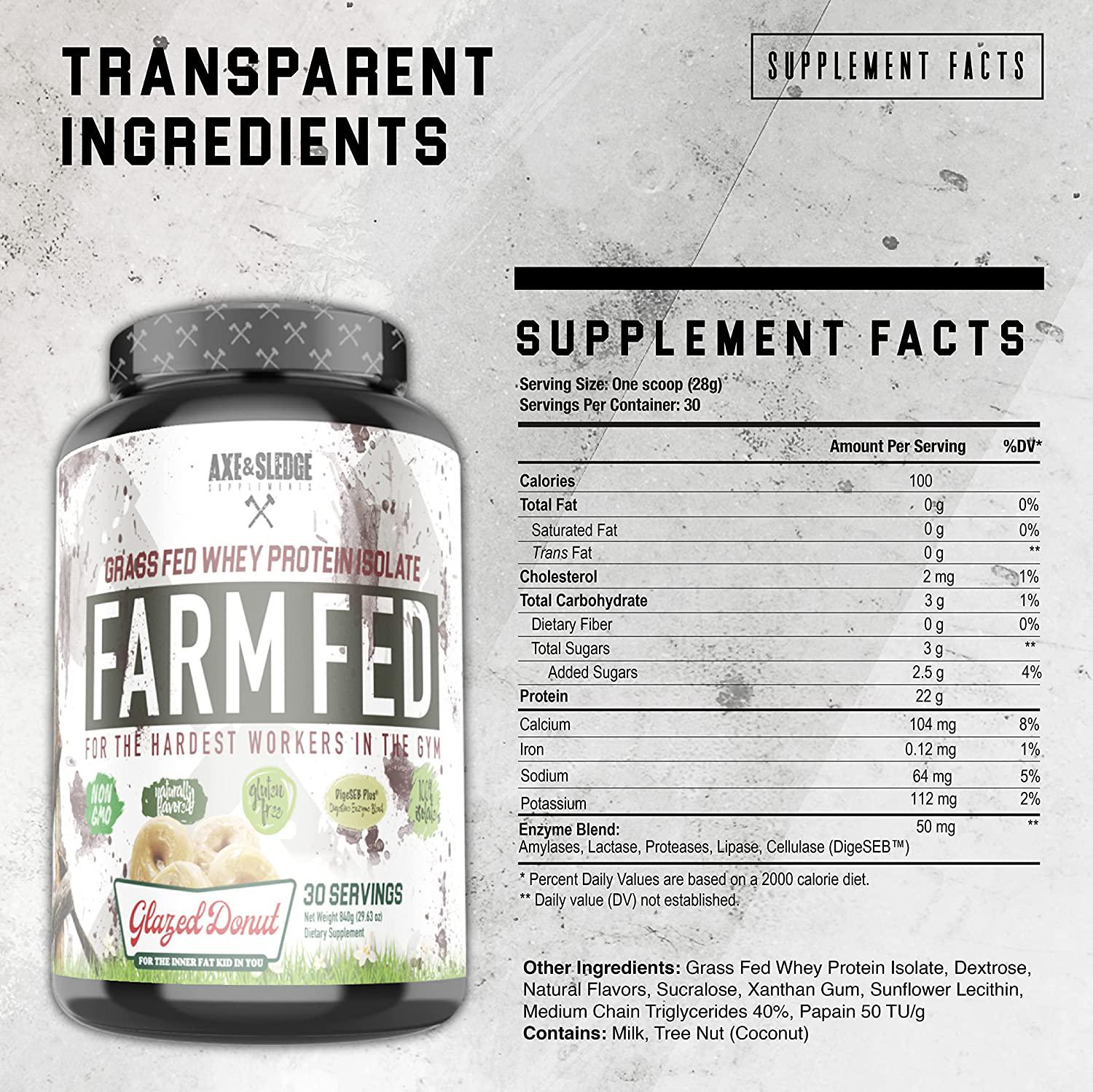 - Farm Fed is a 100% grass-fed whey protein isolate with 50 milligrams of added digestive enzymes (as DigeSEB) for superior nutrition absorption