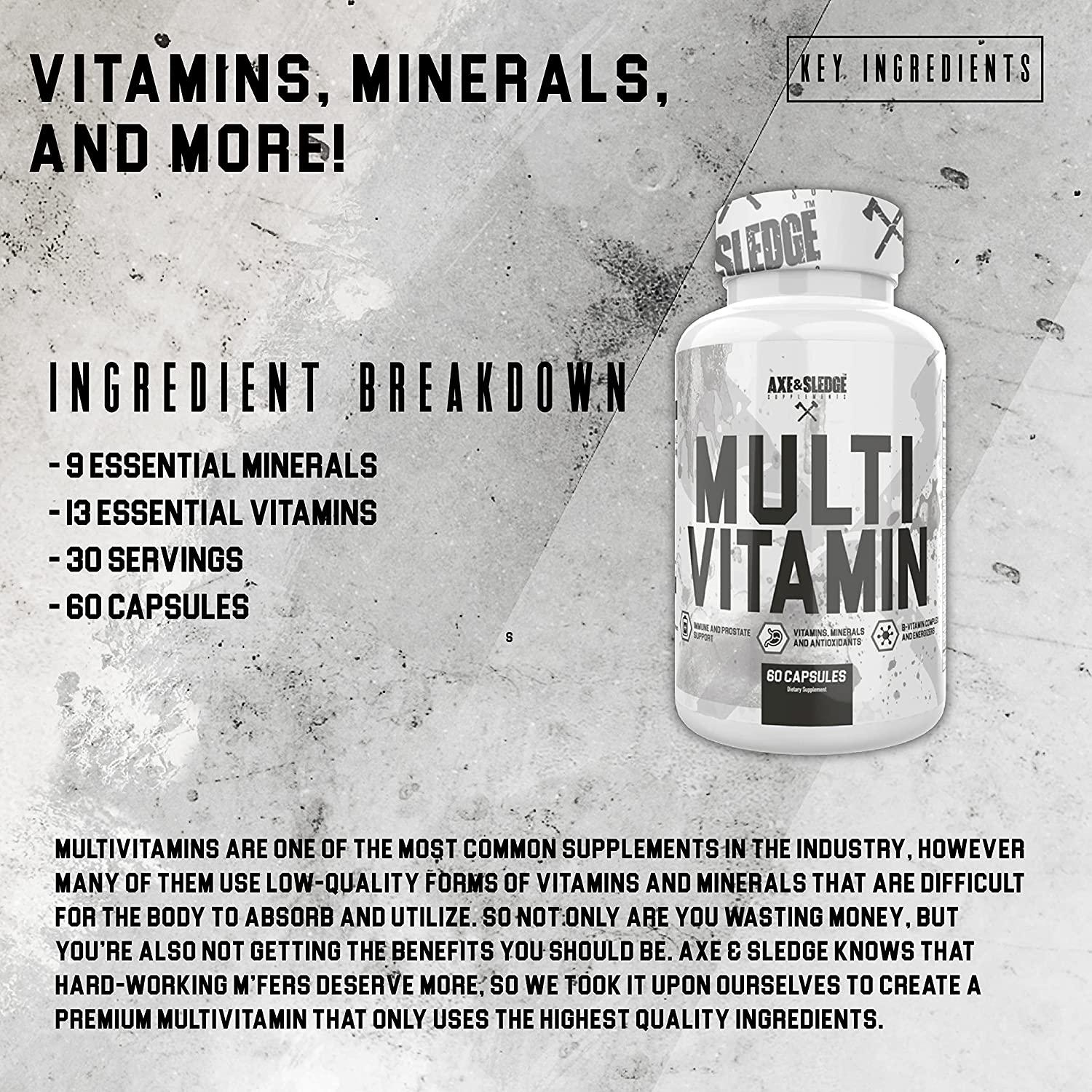 - Axe & Sledge Multivitamin contains highly bioavailable forms of 22 essential vitamins, minerals and antioxidants