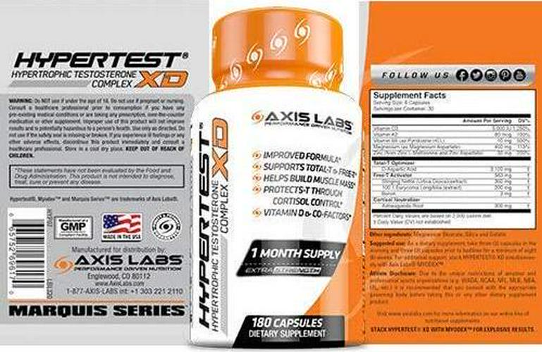 - UNIQUE TESTOSTERONE PERFORMANCE BUNDLE Includes a 30-Day Supply of Axis Labs dynamic duo , Hypertest XTR and Myodex (with Pill Box Organizer).