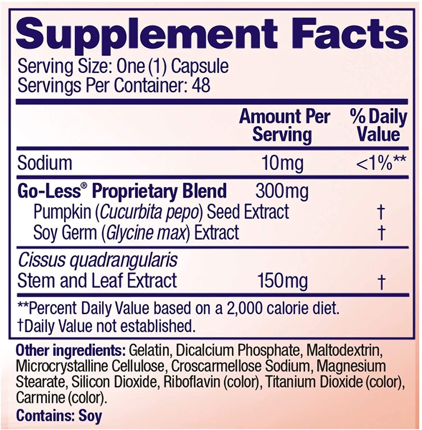 - GO LESS This safe, drug-free supplement contains a naturally sourced blend that supports bladder strength and helps reduce the urge to go, day and night.* Healthy bladder control helps manage those frustrating nighttime visits to the bathroom