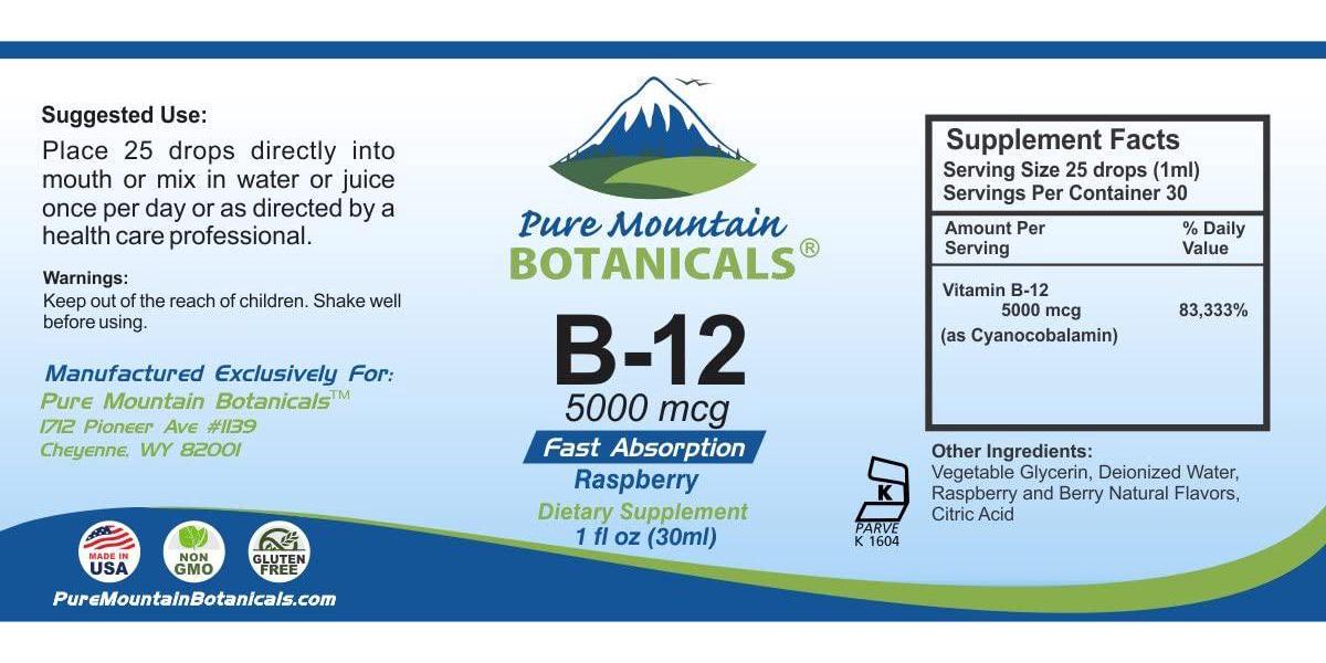 - MONEY BACK GUARANTEE - Try the Best - Risk Free! These liquid b12 drops and ALL Products from Pure Mountain Botanicals are covered by a no-question asked money back guarantee.