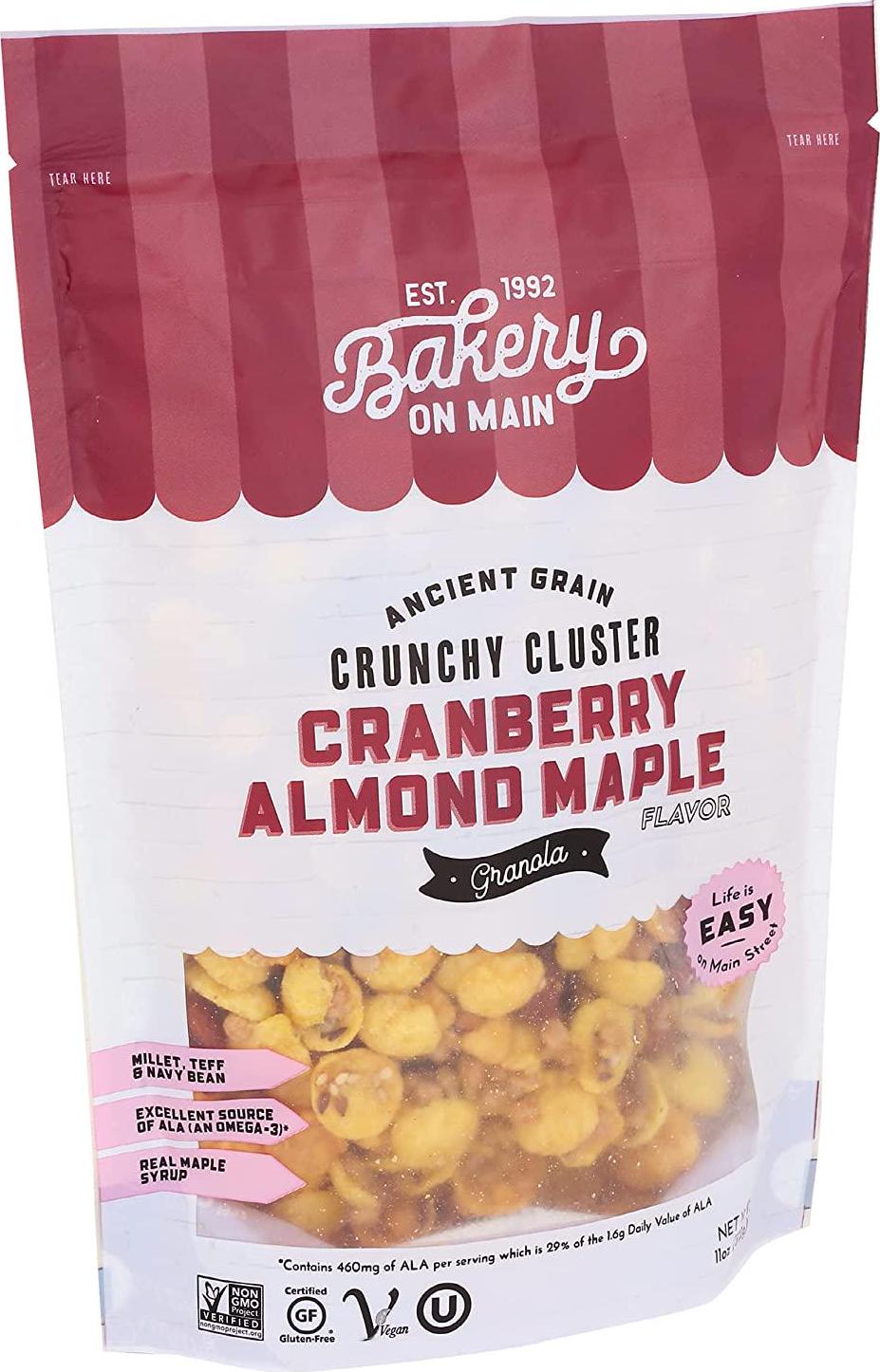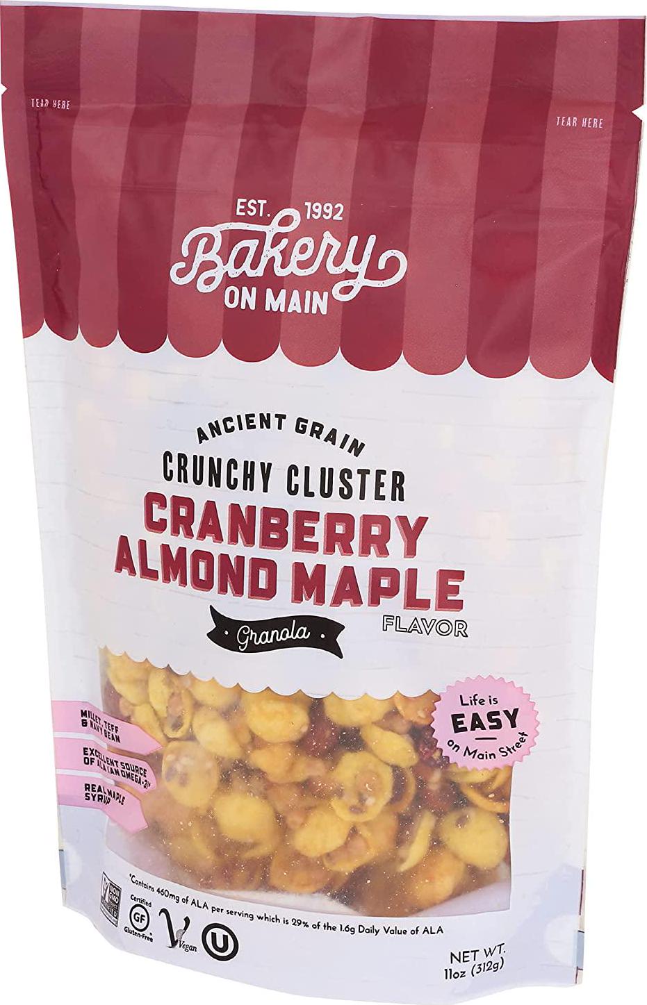 11oz, bakery on main, gluten free, granola, nutty cranberry maple, usa