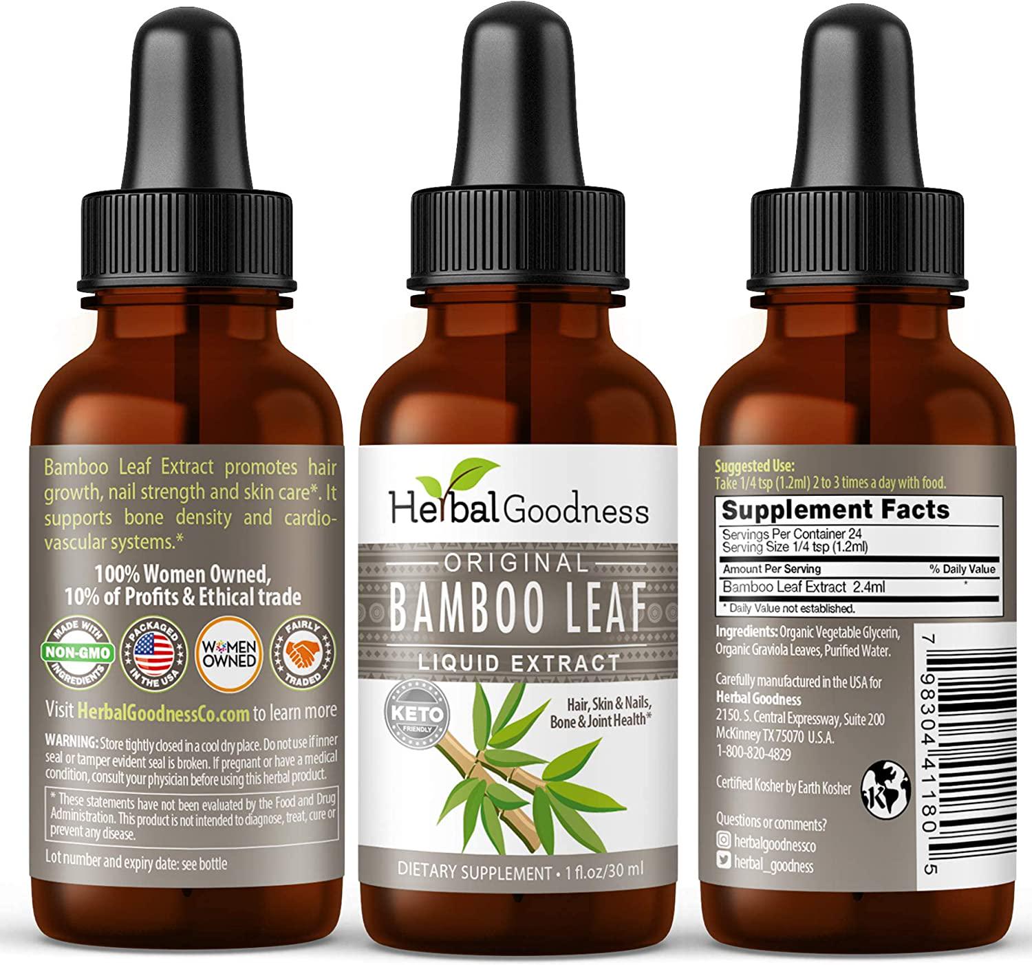 Bamboo Leaf Liquid Extract - Organic Non GMO Hair, Nail and Skin - Supplement-1 oz Bottle- Made in USA