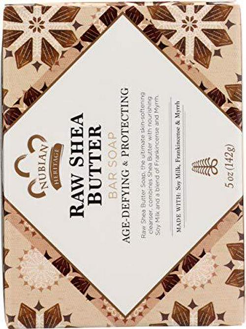 NUBIAN Heritage bar Soap raw Shea Butter, the ultimate skin-softening cleanser, combines shea butter with nourishing soy Milk and a blend of Frankincense and Myrrh. NUBIAN Heritage raw Shea Butter Bar Soap.