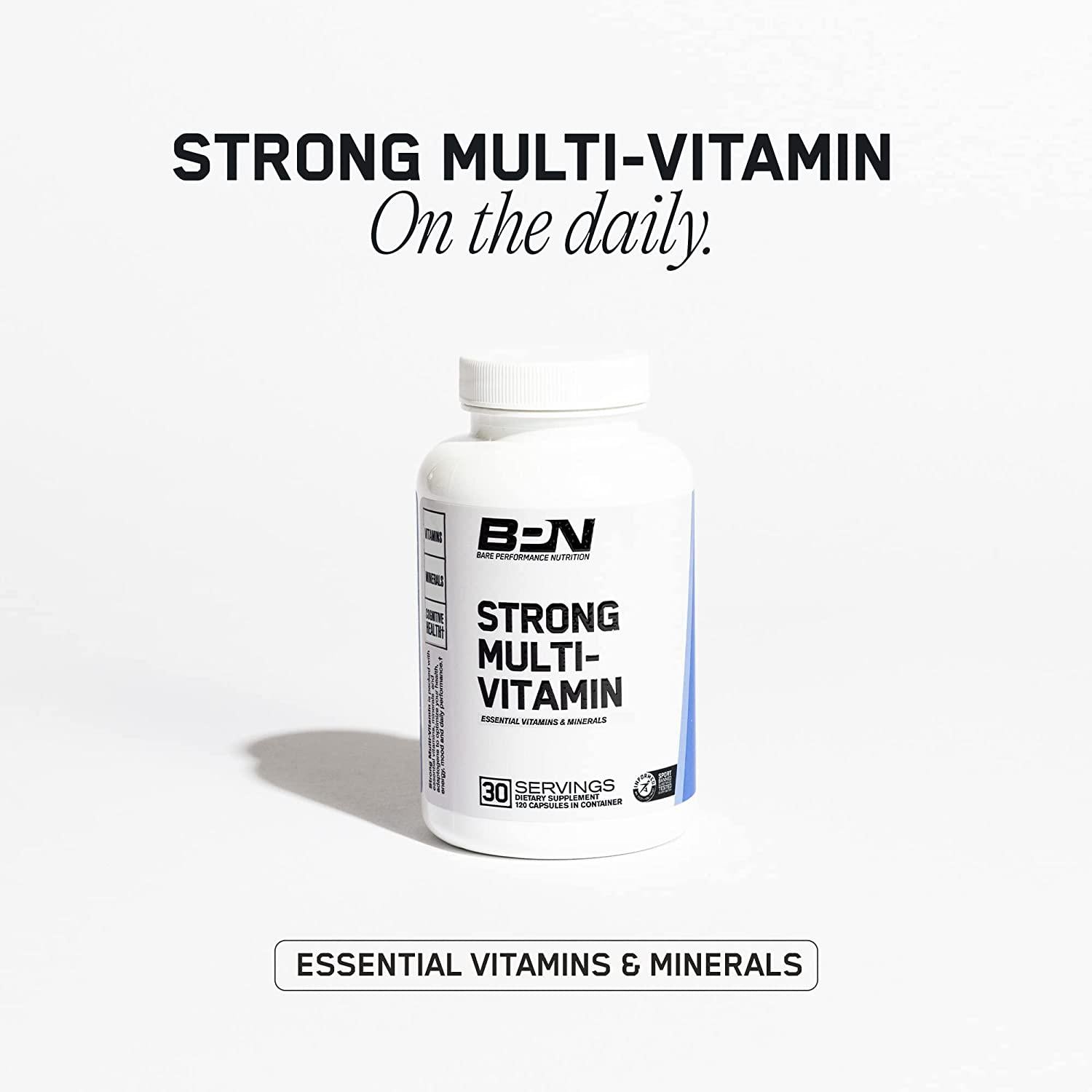 - BPN STRONG MULTI-VITAMIN: Packed with essential vitamins and minerals to optimize your health, energy, mood and sleep. It contains powerful adaptogens such as Bacopa Monnieri and Ashwagandha to improve your daily performance. 30 Day Supply