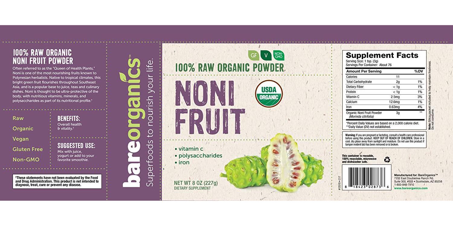 BAREORGANICS Noni Fruit Powder, 8 Ounce