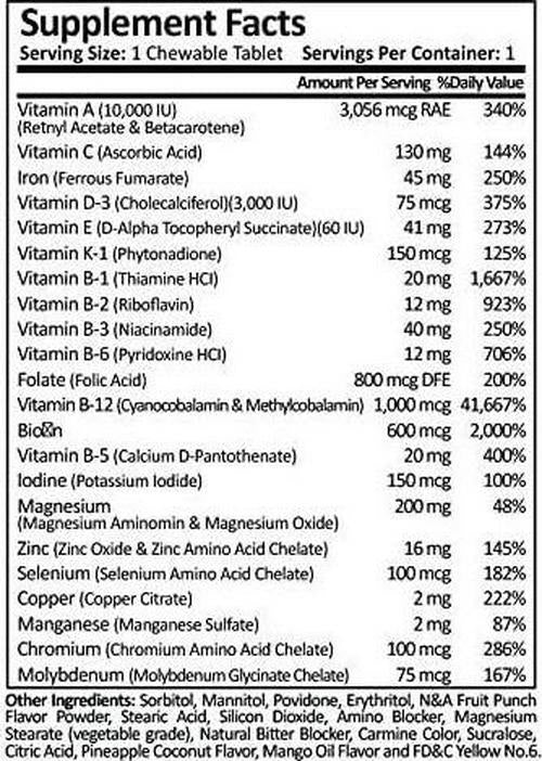 - NEW DELICIOUS FLAVOR: Our Fruit Punch flavored chewable multivitamin is the ONLY complete once a day chewable multivitamin in the industry!