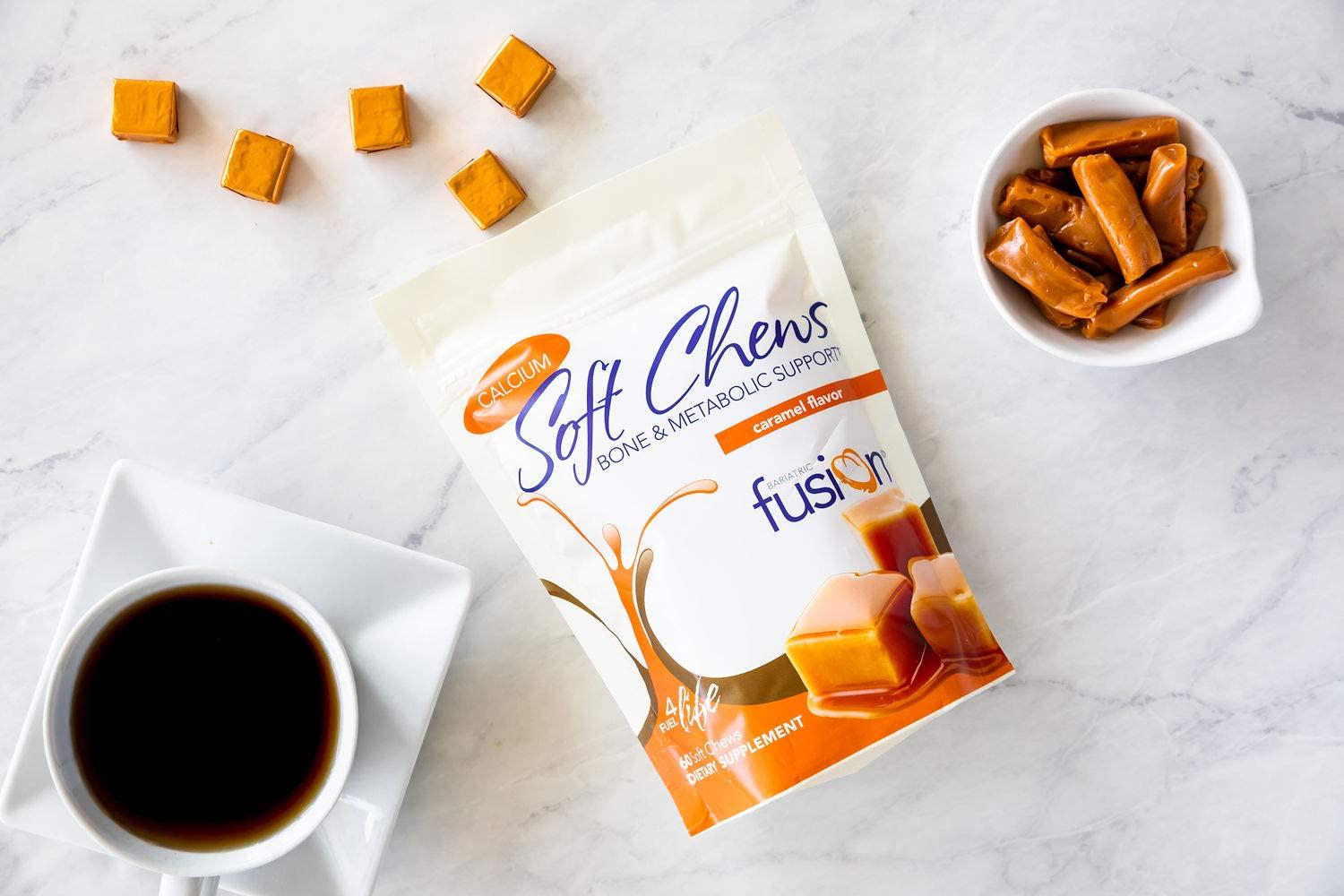 Bariatric Fusion 500mg Calcium Citrate and Energy Soft Chew Caramel Flavor for Bariatric Surgery Patients Including Gastric Bypass and Sleeve Gastrectomy, 60 Count, Sugar Free, Made in The USA