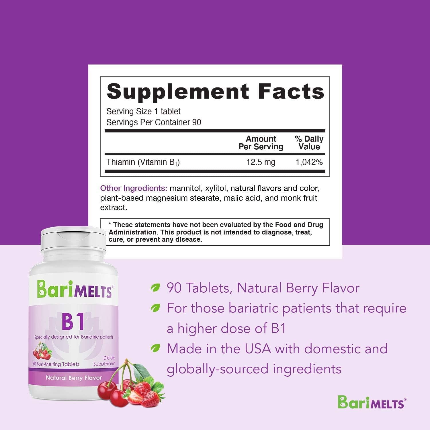 - FAST DISSOLVING, GREAT TASTING: Fast-dissolving, great-tasting bariatric B1! Many patients require higher doses of Vitamin B1 specifically. Supports overall nervous system function. Promotes increased energy and lowered stress levels.