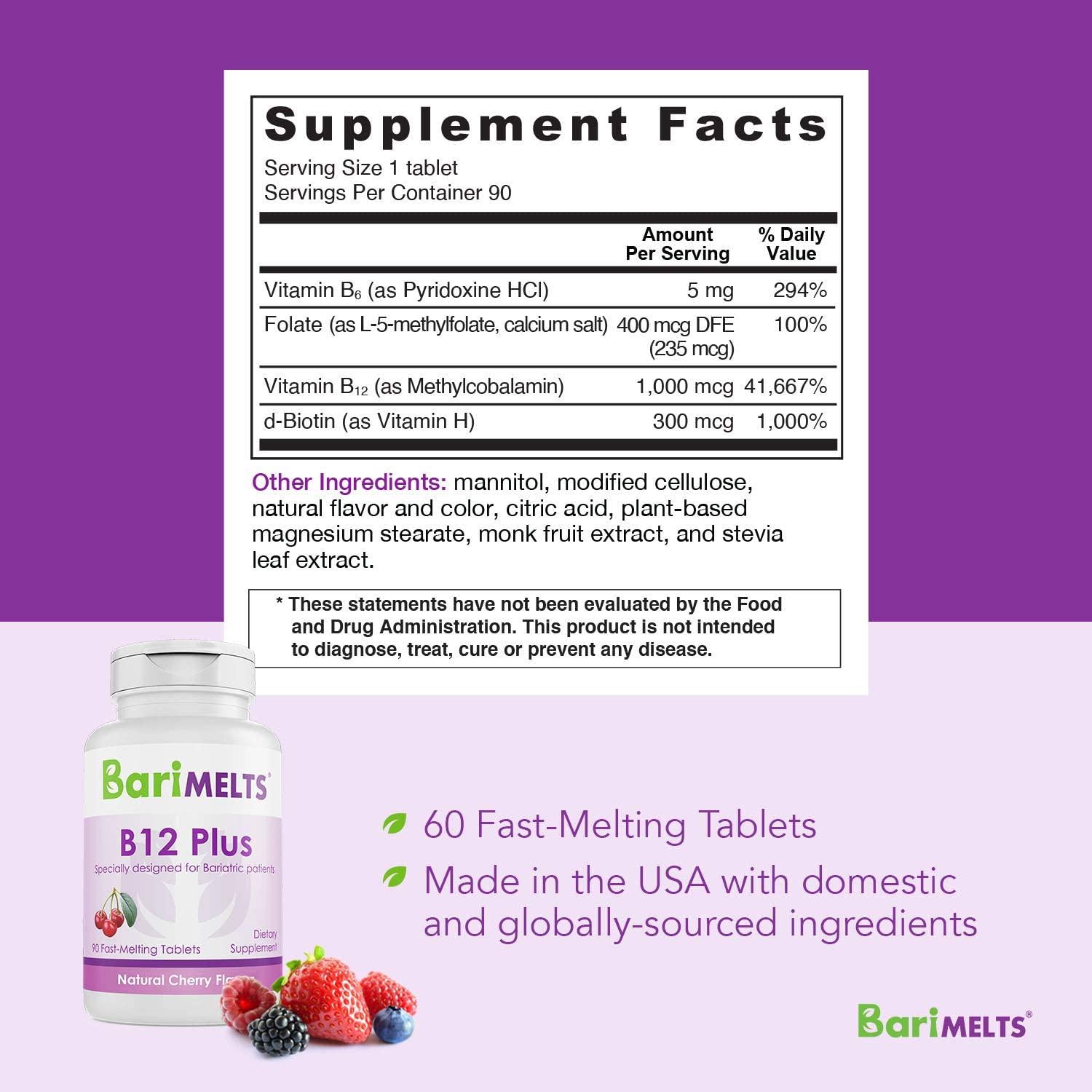- FAST DISSOLVING, GREAT TASTING: Fast-dissolving, great-tasting bariatric B12 plus other key B-Vitamins. Bioactive form of B12 supports mental clarity. The advantage of Methylcobalamin and Methylfolate supports energy and mood.