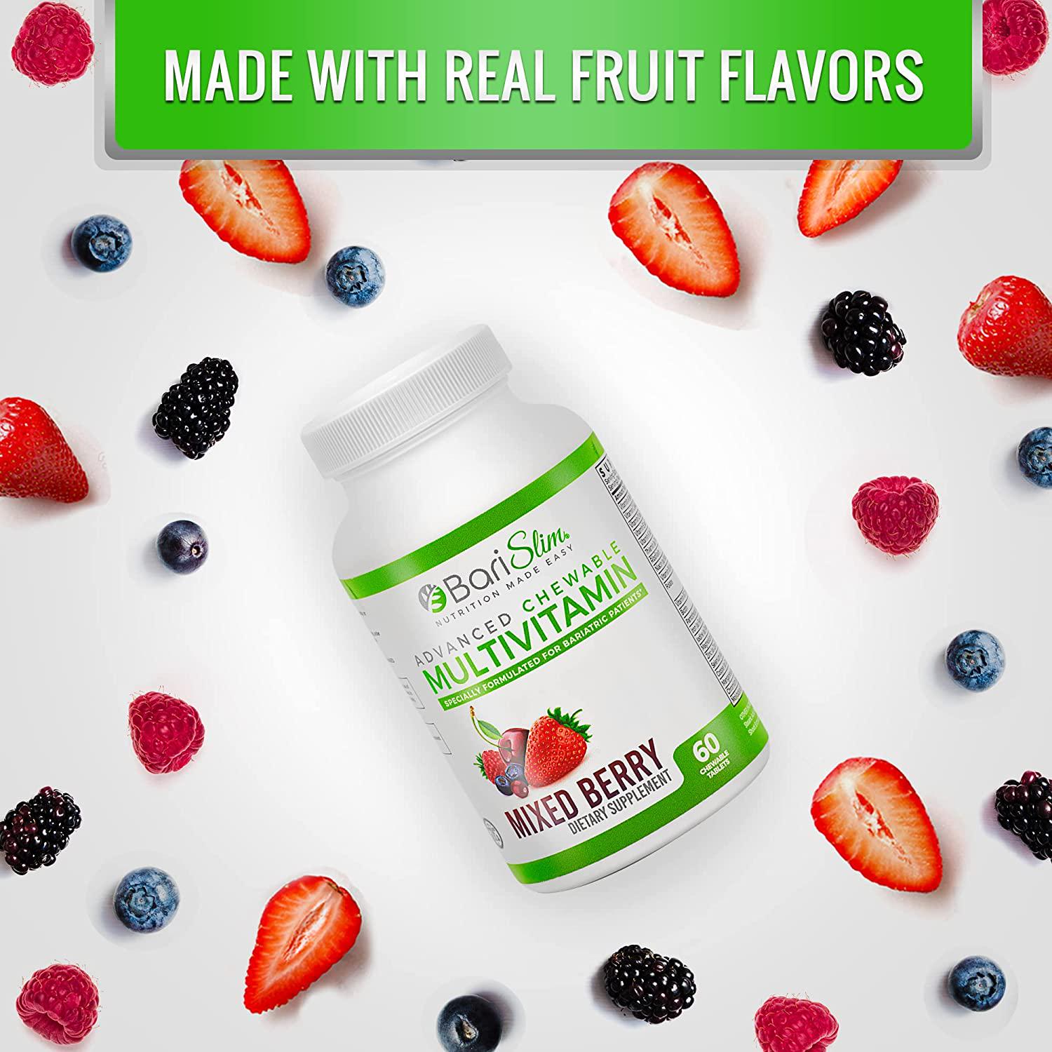 BariSlim Advanced Chewable Bariatric Multivitamin with Iron - Bariatric Vitamin and Supplement for Post Bariatric Surgery Including Gastric Bypass and Gastric Sleeve - Mixed Berry - 60 Count