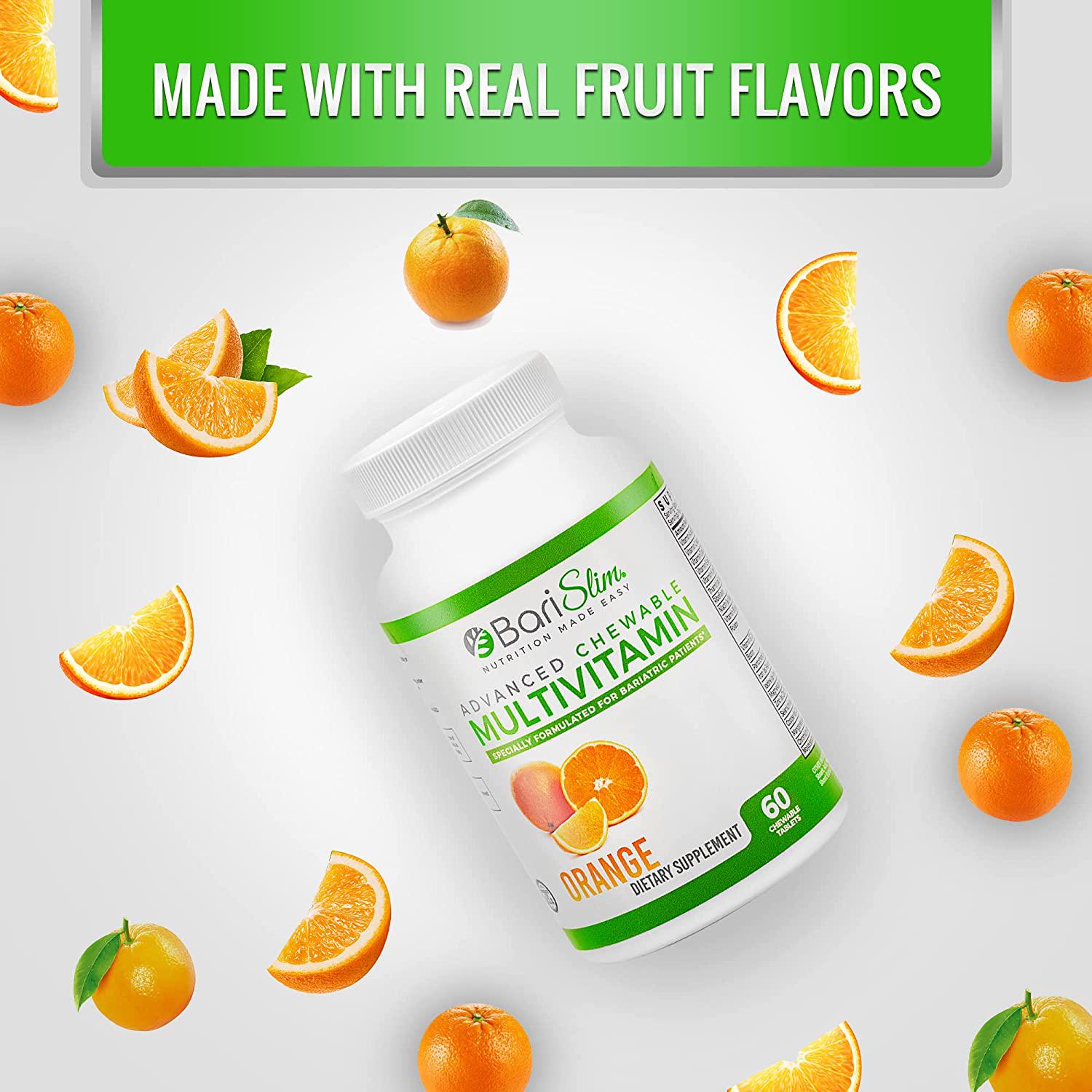 BariSlim Advanced Chewable Bariatric Multivitamin with Iron - Bariatric Vitamin and Supplement for Post Bariatric Surgery Including Gastric Bypass and Gastric Sleeve - Orange - 60 Count