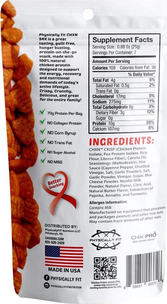 Chxn-snx Crispy Protein Bites is a great tasting, guilt Free, grab-n-go snack, made with natural chicken protein providing a healthy alternative to traditional snacks. Crispy, crunchy, delicious, and great for the entire family!