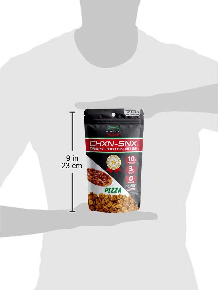 70 grams protein, all natural, chicken protein, guilt-free snack, pizza flavor, protein bites, usa