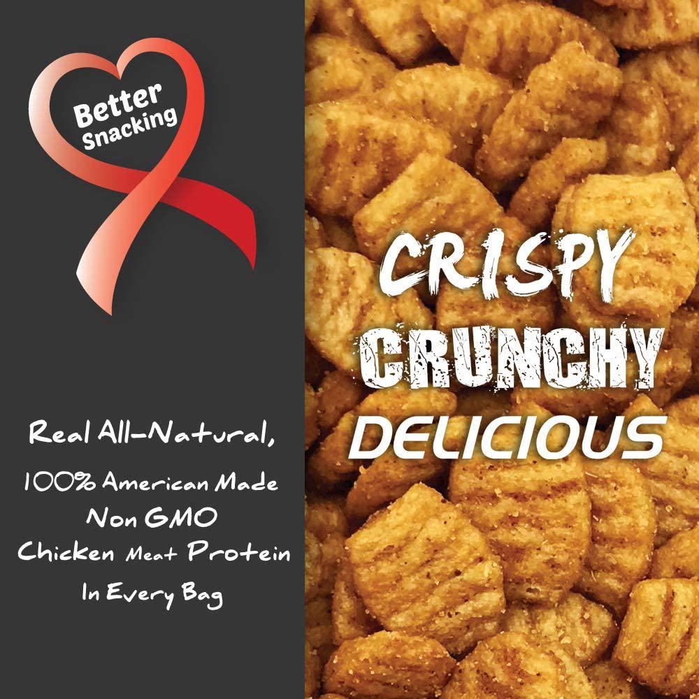 Chxn-snx Crispy Protein Bites is a great tasting, guilt Free, grab-n-go snack, made with natural chicken protein providing a healthy alternative to traditional snacks. Crispy, crunchy, delicious, and great for the entire family!
