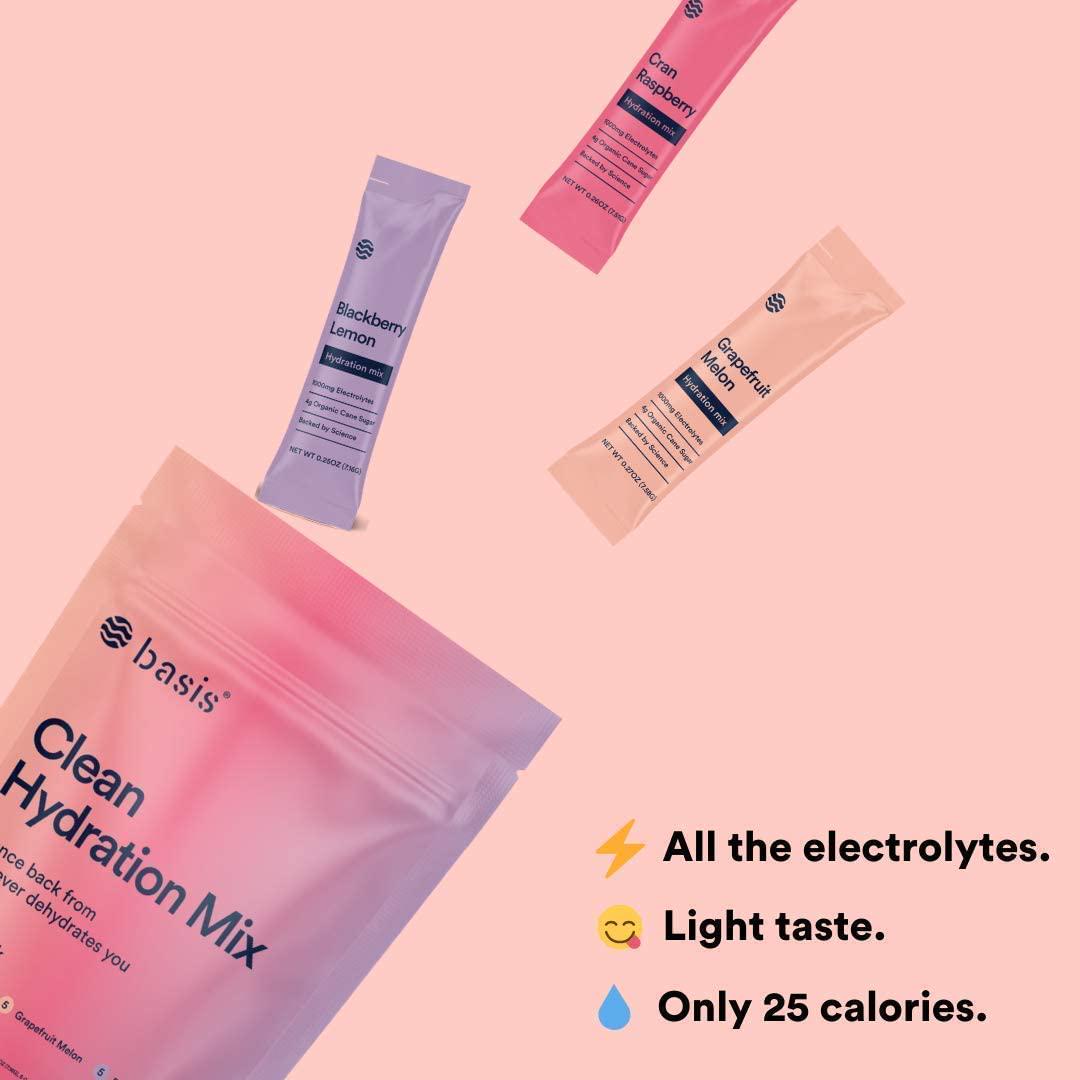 Basis Electrolyte Powder Mix, Keto-Friendly Hydration, Low Sugar for Dehydration Recovery - 3 Variety Flavors / 3 Pouches (45 Sticks)