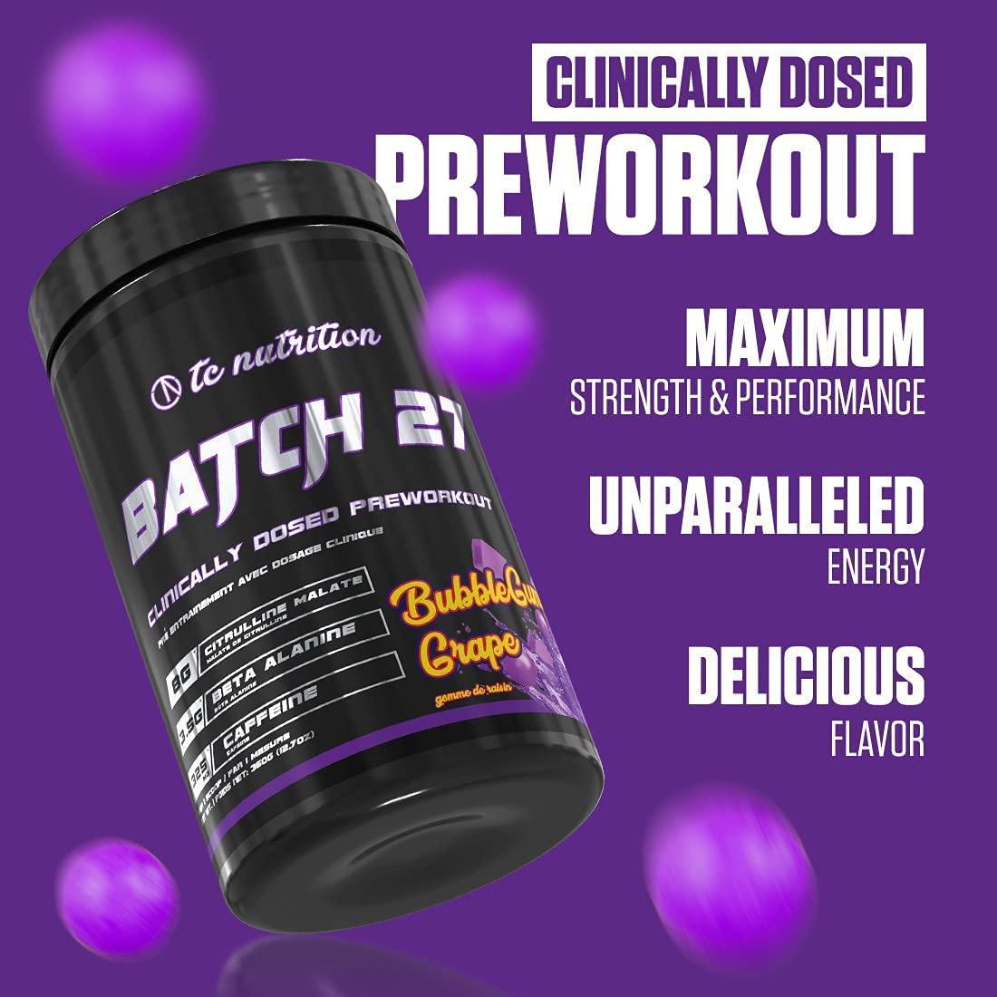 Batch 27 Pre Workout Powder - Instant Strength, Energy, and Intense Focus - Nitric Oxide Booster and Powerful Pre Workout for Men and Women w/ 8g Citrulline, 3.5g Beta Alanine More 20sv Bubblegum Grape